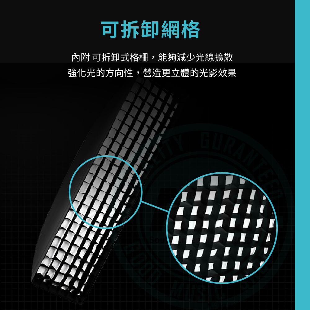 ◆ 可拆卸格柵幫助精準塑造光影,減少背景干擾