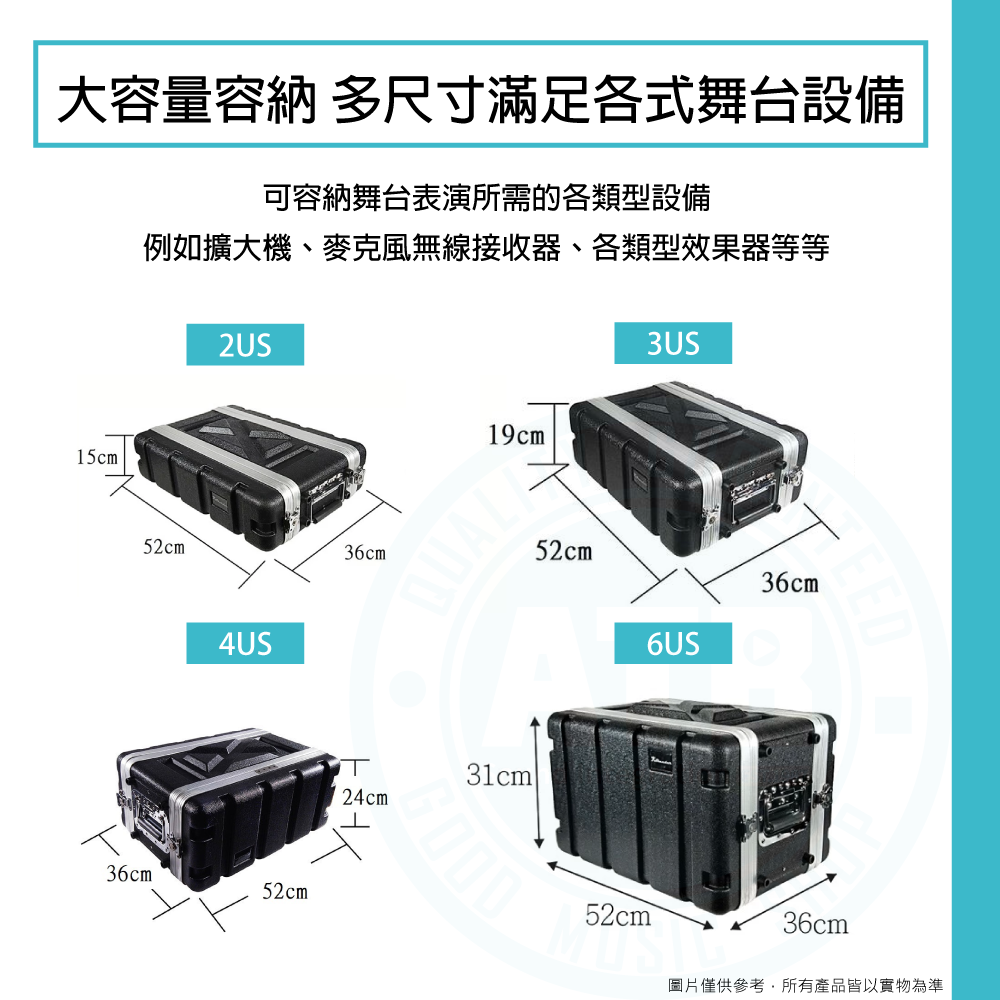 ◆ 可容納舞台表演所需的各類型設備,如擴大機、麥克風無線接收器、各類效果器等
