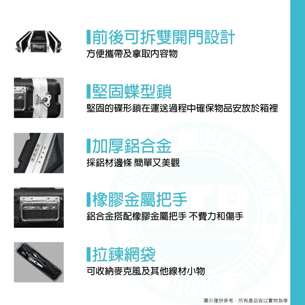 ◆ 由耐磨耐用的塑鋼箱體構成前後可拆卸,使用方便,邊緣由ABS鋁製金屬加固,防鏽性佳
