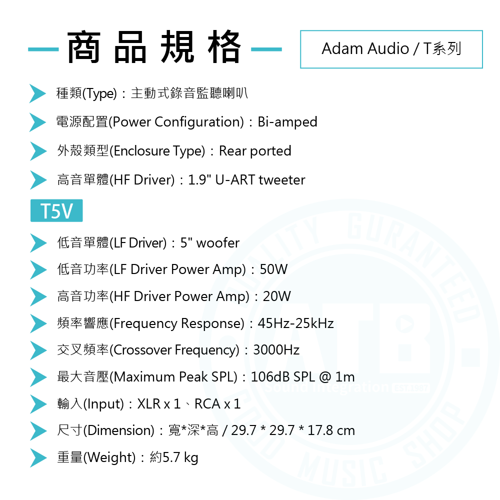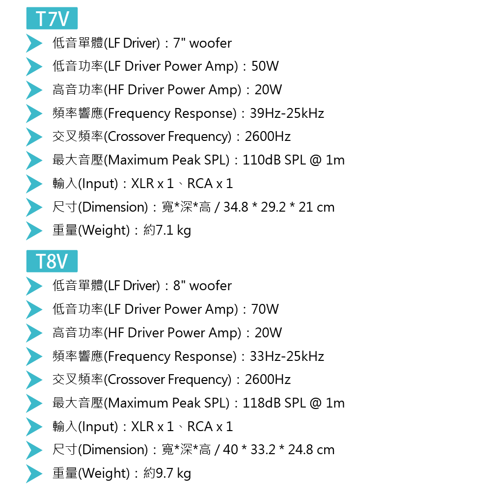 ◆ 低音單體 : T5V(5吋)、T7V(7吋)、T8V(8吋)