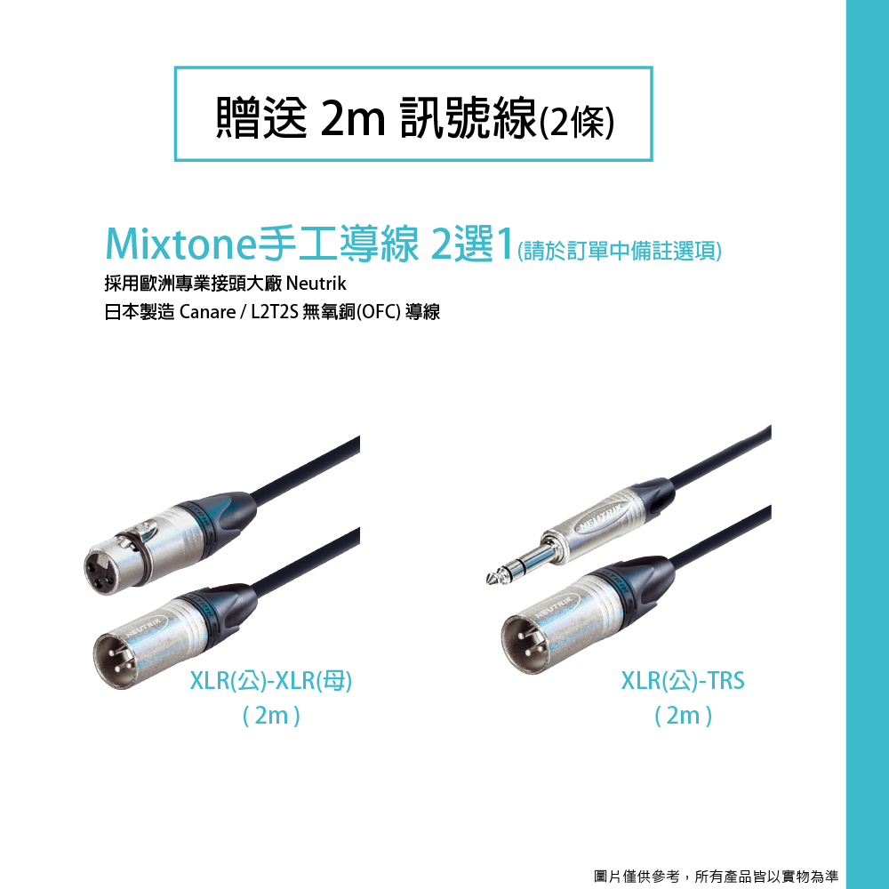 ◆ 送2m 訊號線 : XLR(公)-XLR(母)*2 / XLR(公)-TRS*2