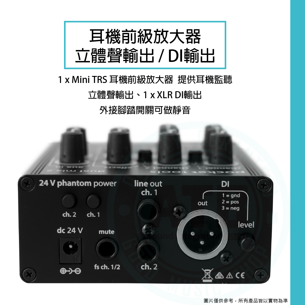 ◆ 立體聲輸出、DI輸出、耳機前級放大器