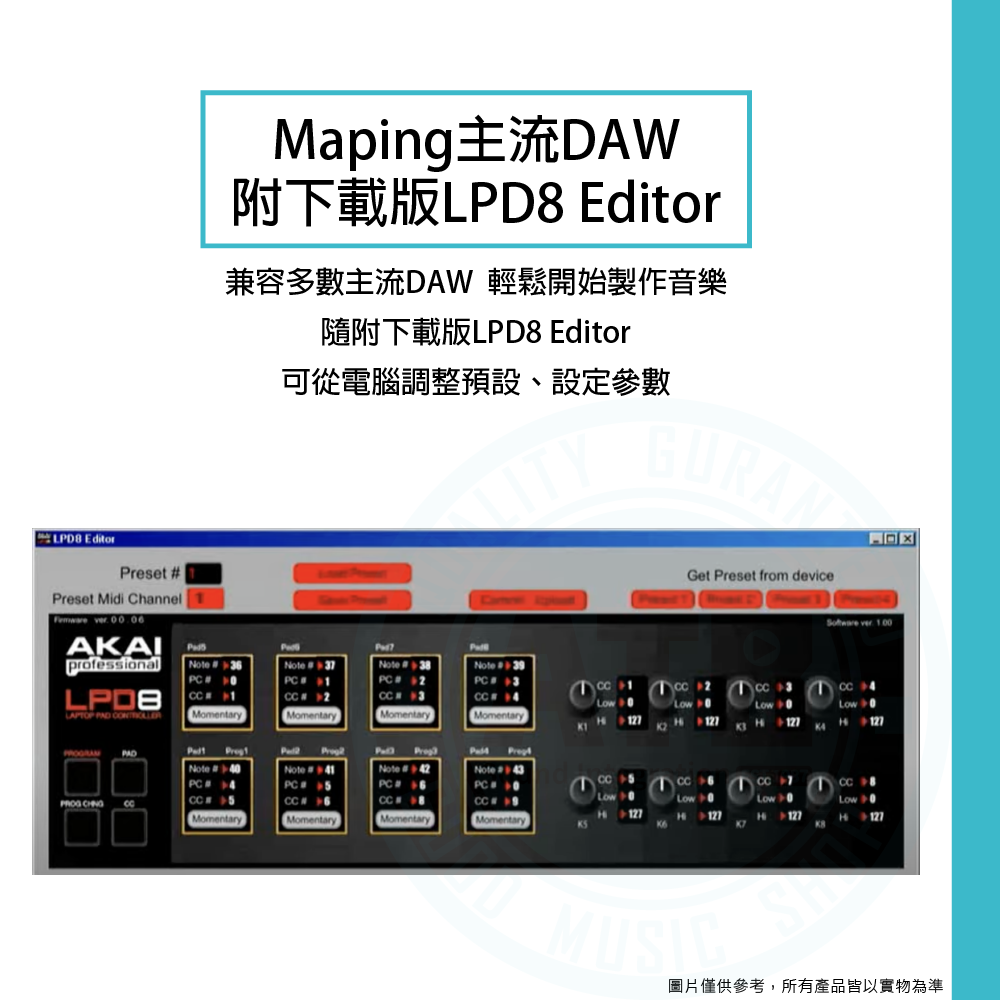◆ Maping主流DAW,附下載版LPD8 Editor