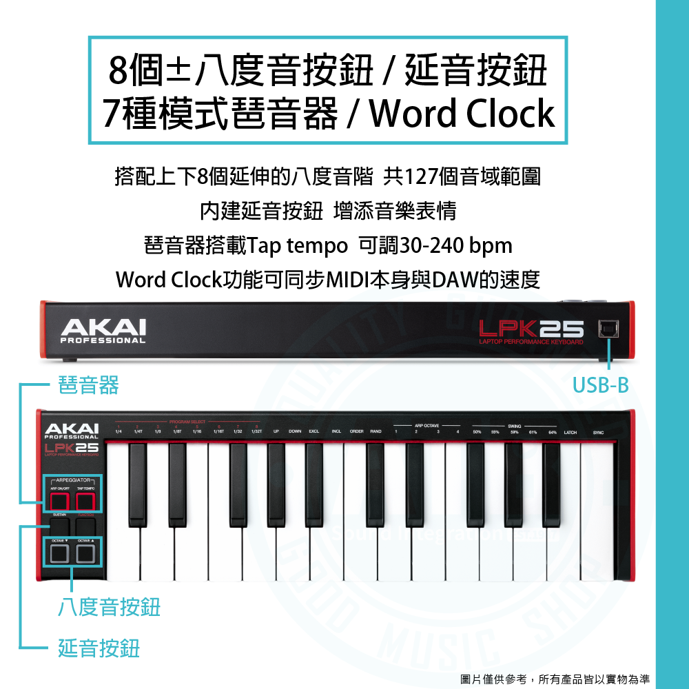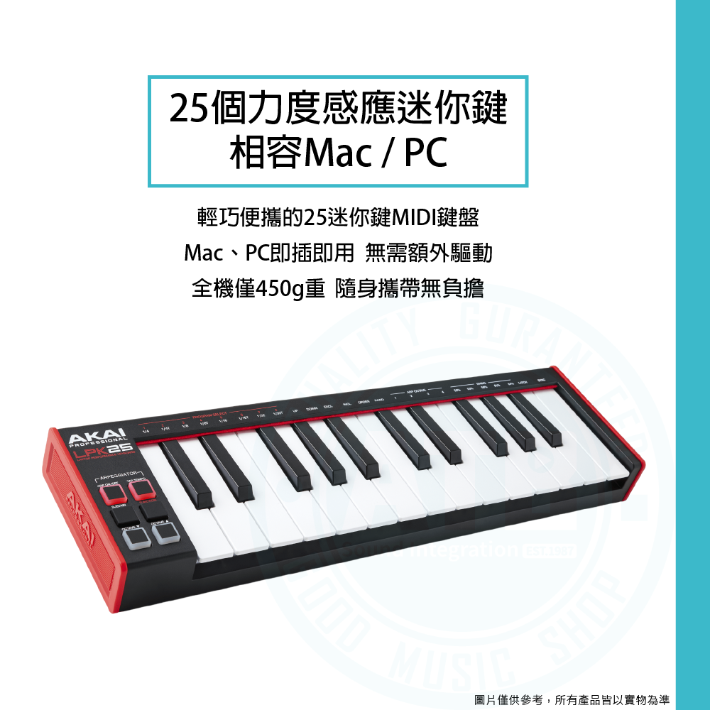 ◆ 25個力度感應迷你鍵,相容Mac、PC