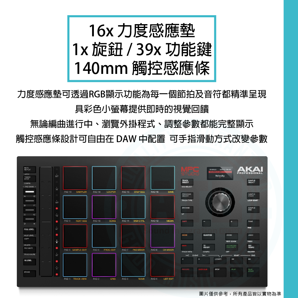 ◆ 16x 度感應打擊墊具RGB色彩顯示,1個360度encoder旋鈕,39個強大的可編輯式功能鍵