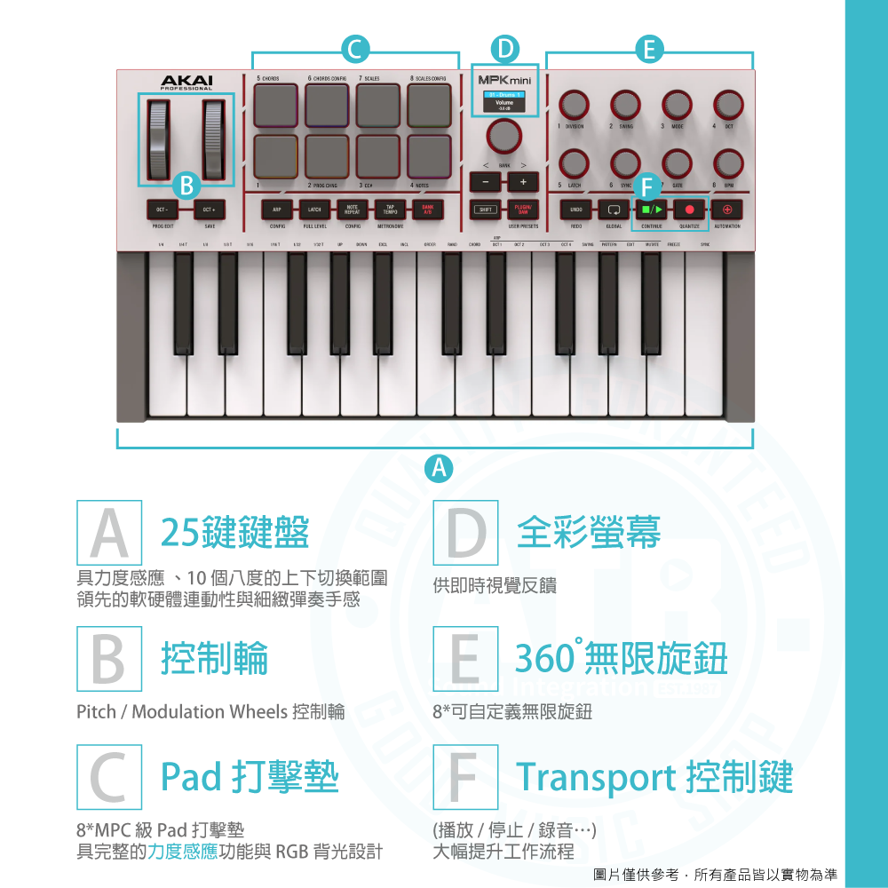 ◆ 25 鍵迷你鍵+8 顆 RGB 打擊墊