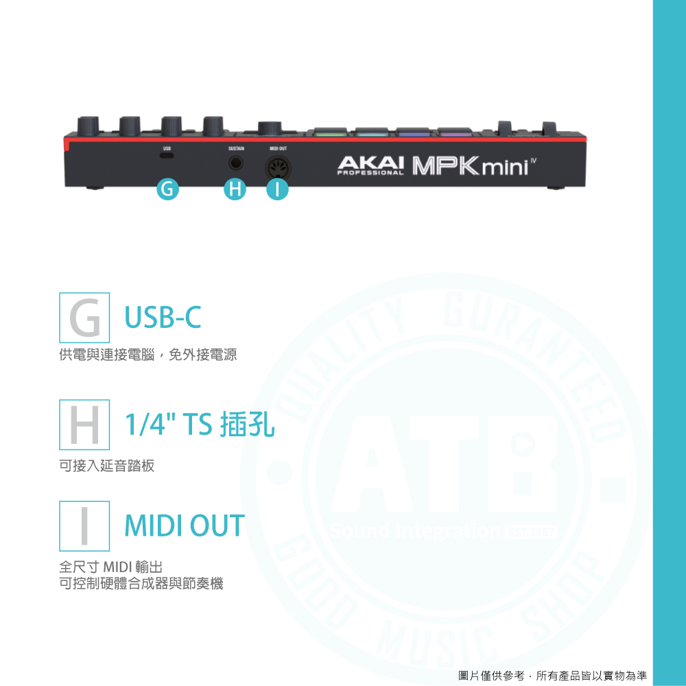 ◆ USB-C、5-pin MIDI 與踏板輸入
