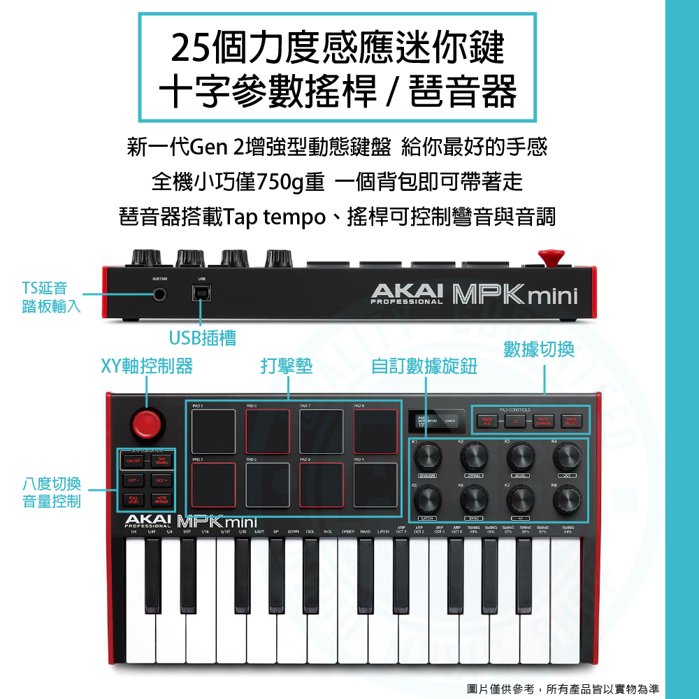 ◆ 25個力度感應迷你鍵、十字參數搖桿、琶音器