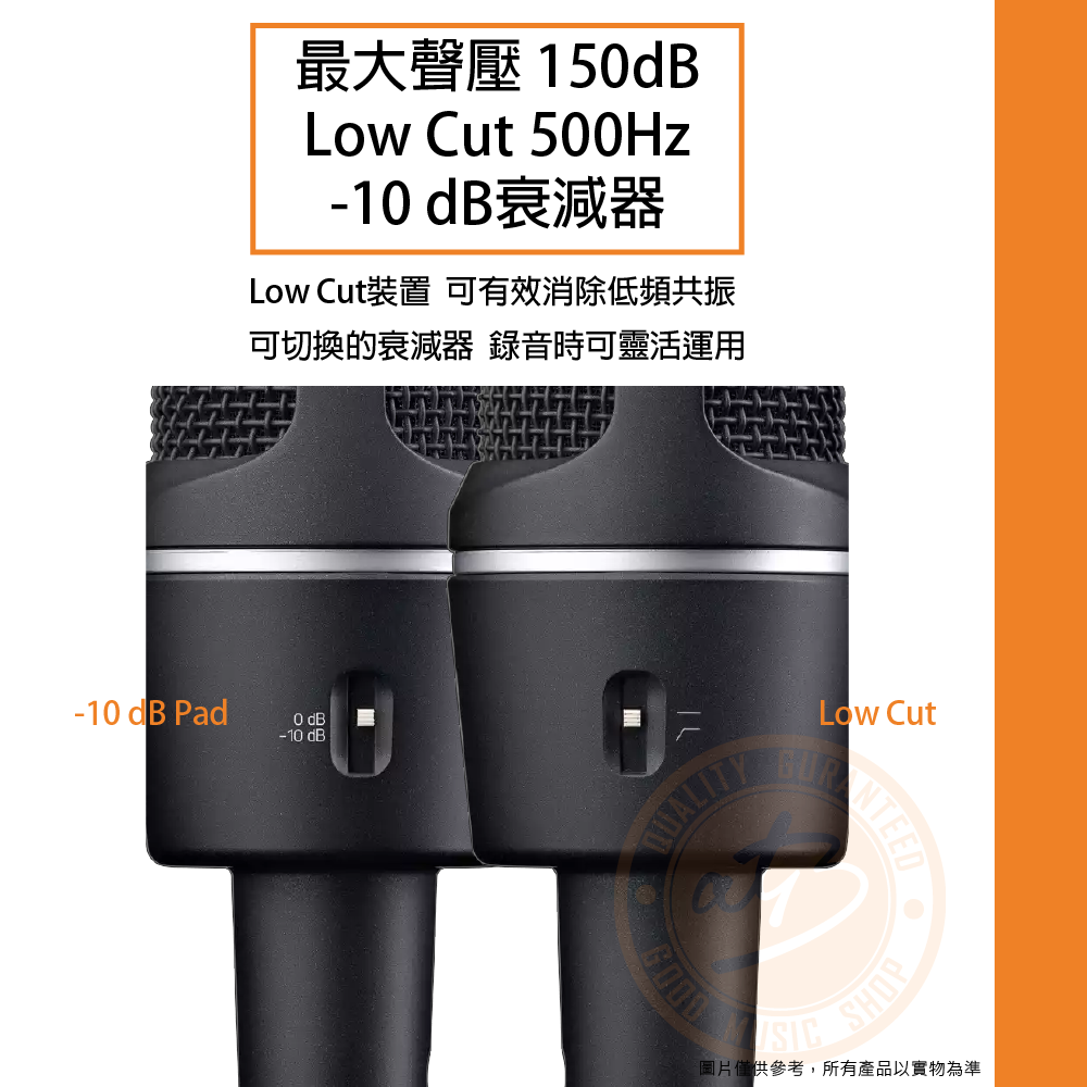 ◆ 搭載Low Cut 500Hz開關及-10dB衰減器
