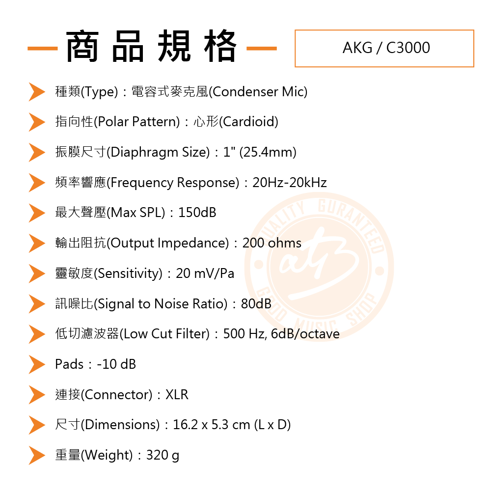 ◆ 心形指向收音,具有1吋鍍金大振膜
