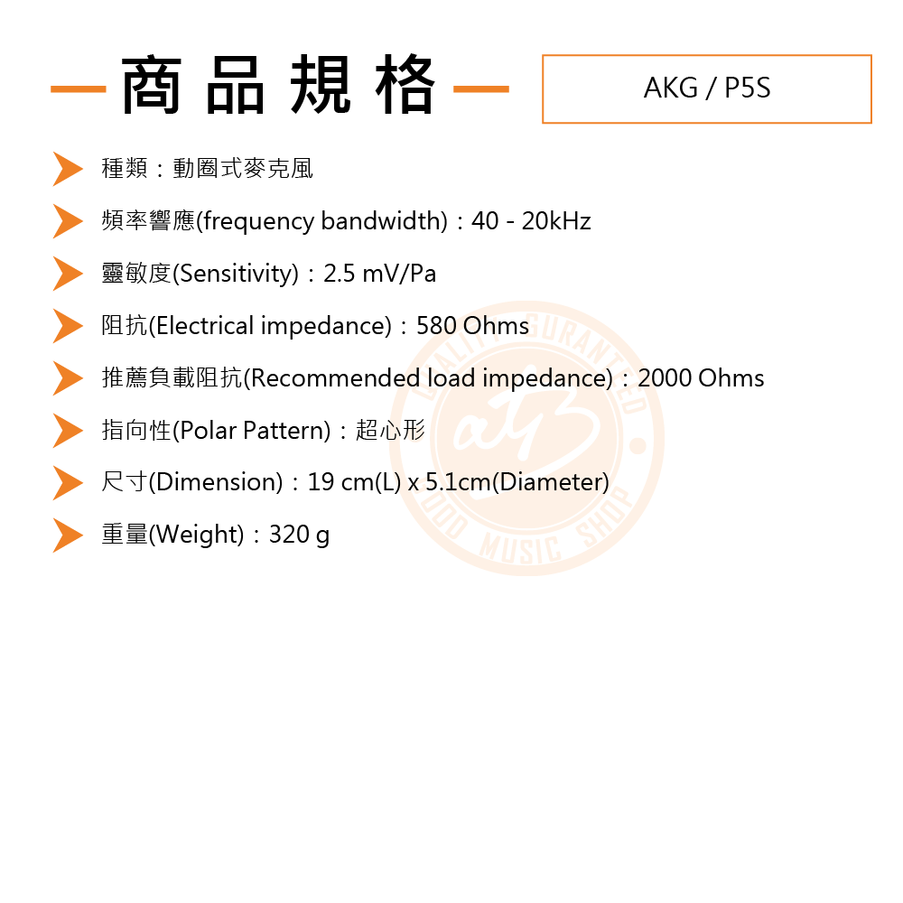 ◆ 超心形指向收音,頻率響應40 - 20kHz、靈敏度 2.5 mV/Pa