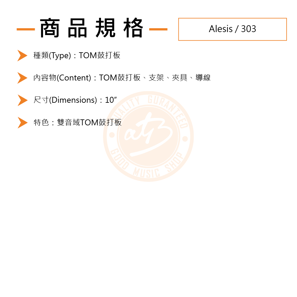 Alesis / 303 10吋網面TOM擴充組(雙音)(含支架、夾具、導線)