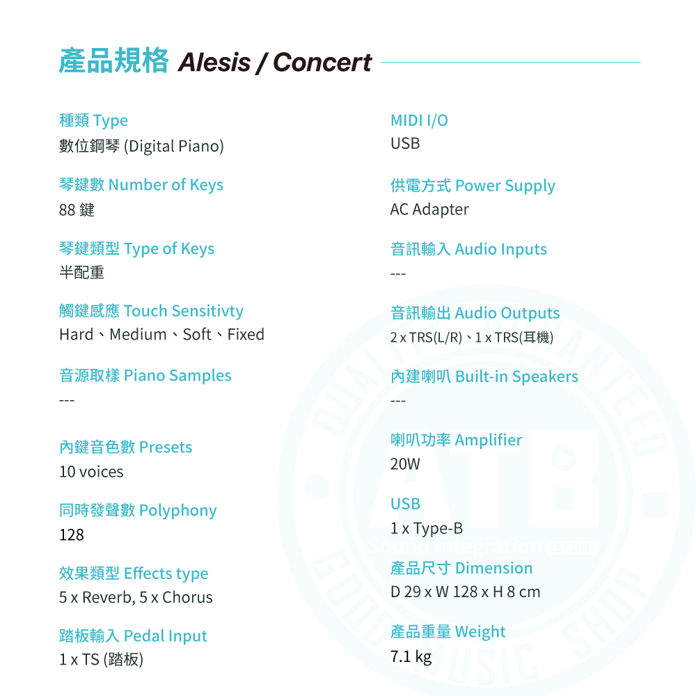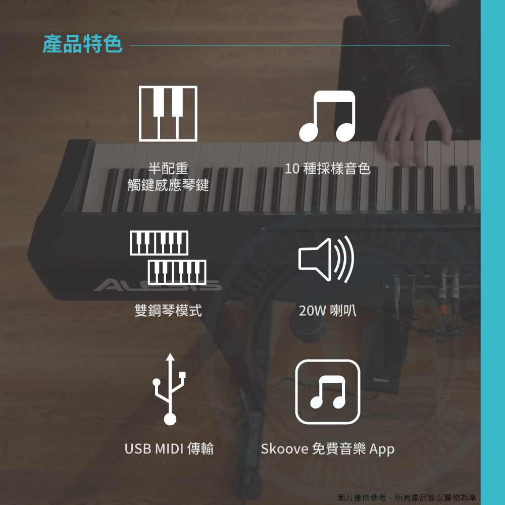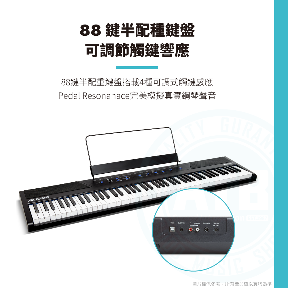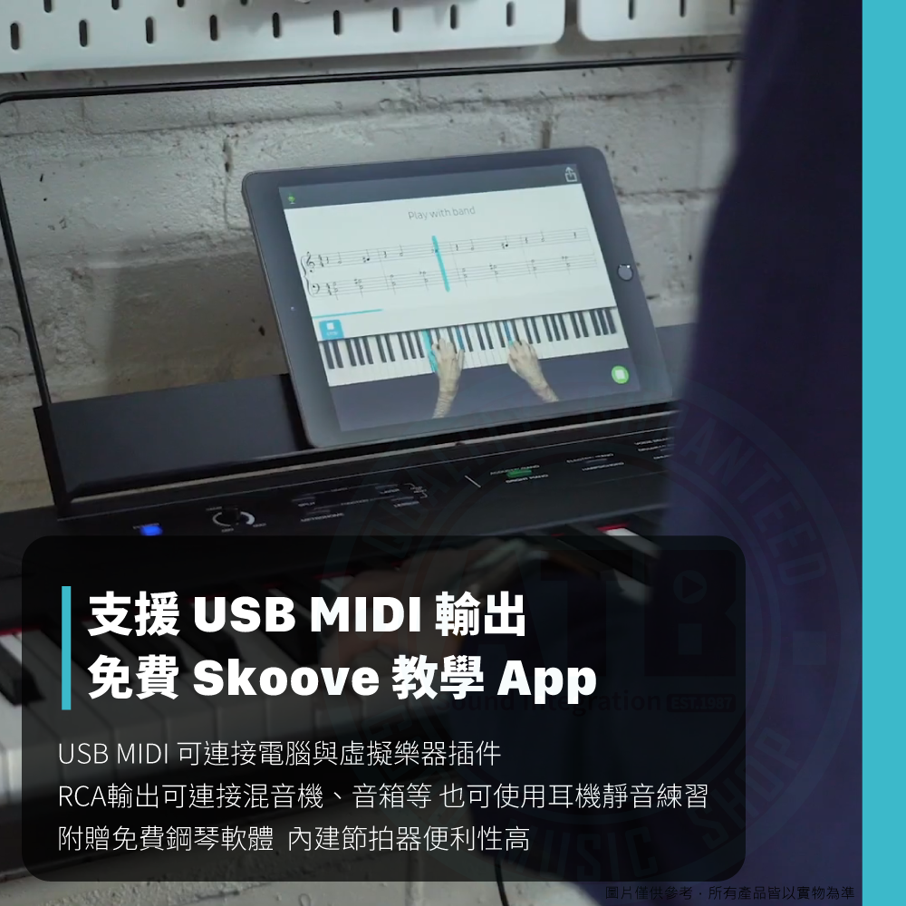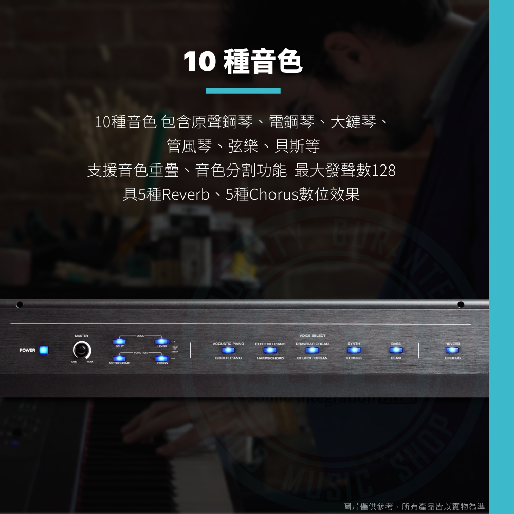 ◆ 88鍵半配重鍵盤搭載4種可調式觸鍵感應,10種音色,支援音色重疊、音色分割功能