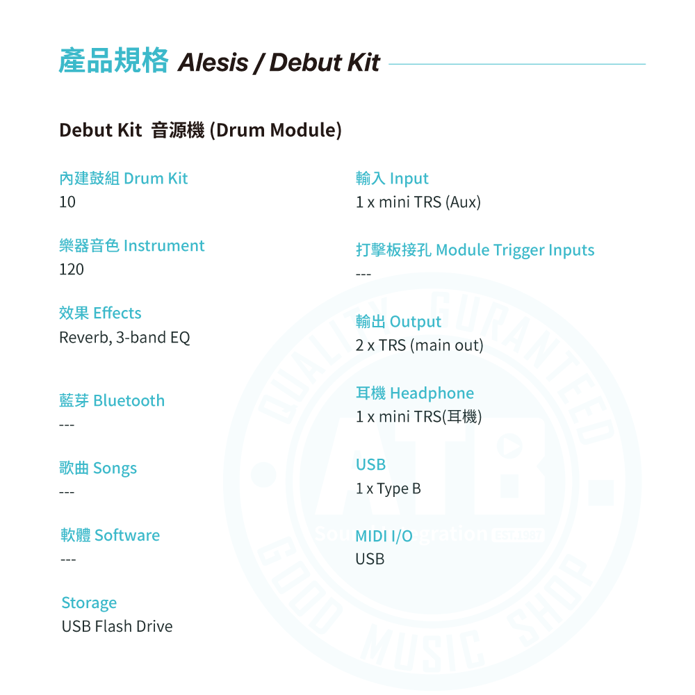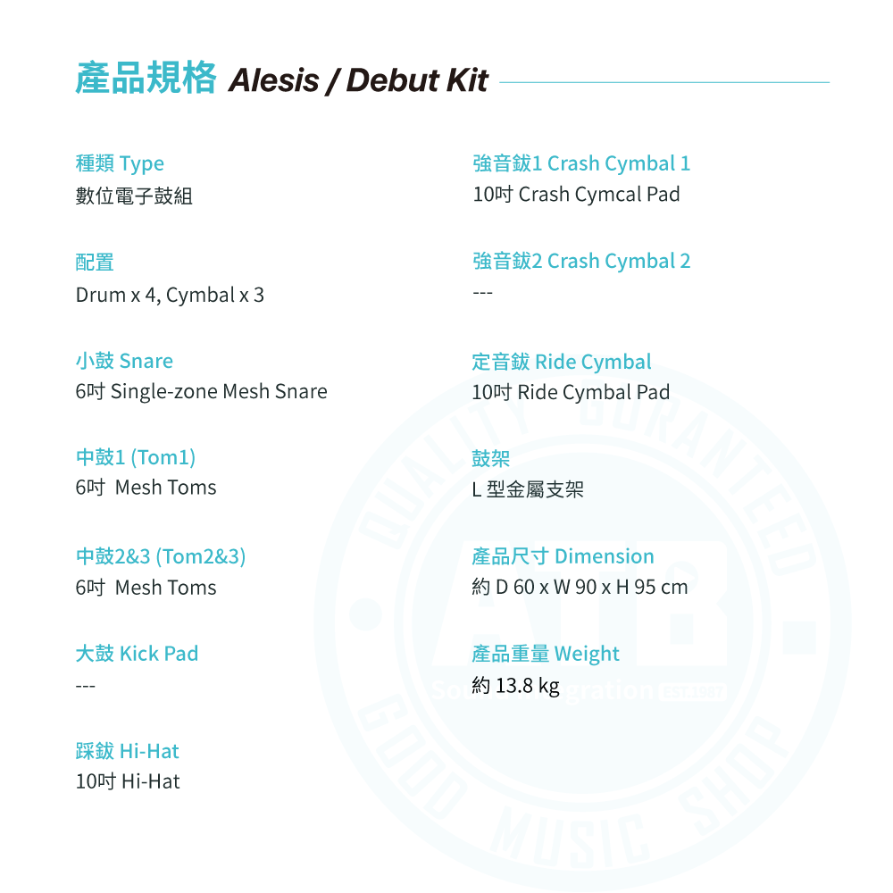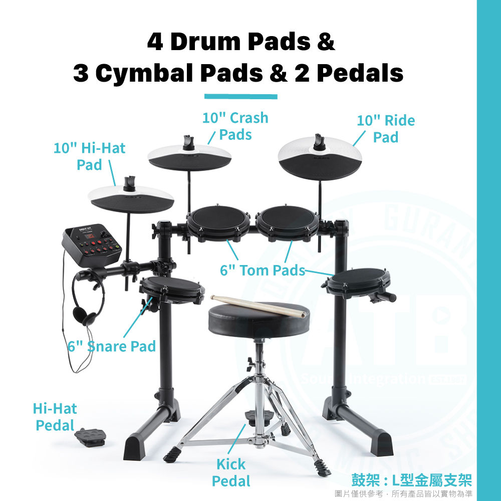 ◆ 配置:4 Drum Pads & 3 Cymbal Pads & 2 Pedals
