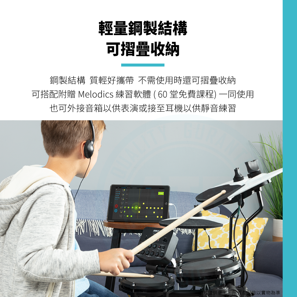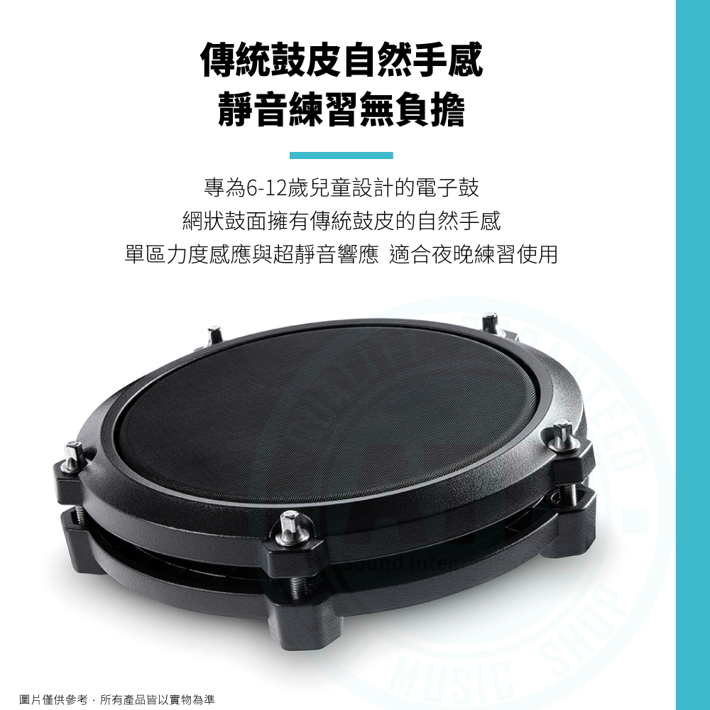 ◆ 專為6-12歲兒童設計的電子鼓,具網狀鼓面與超靜音響應