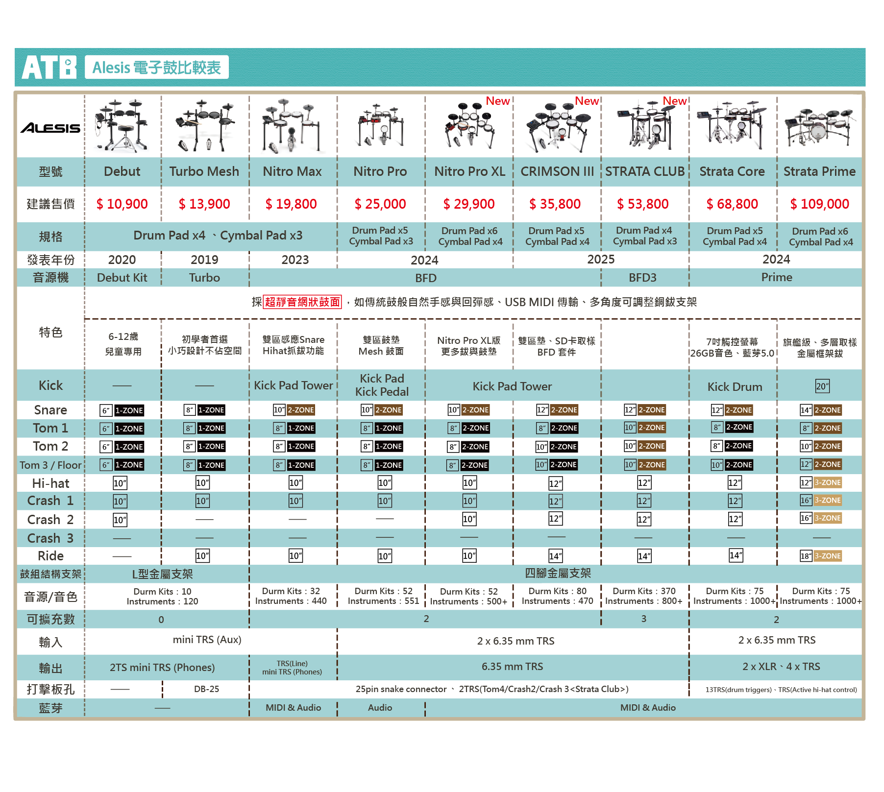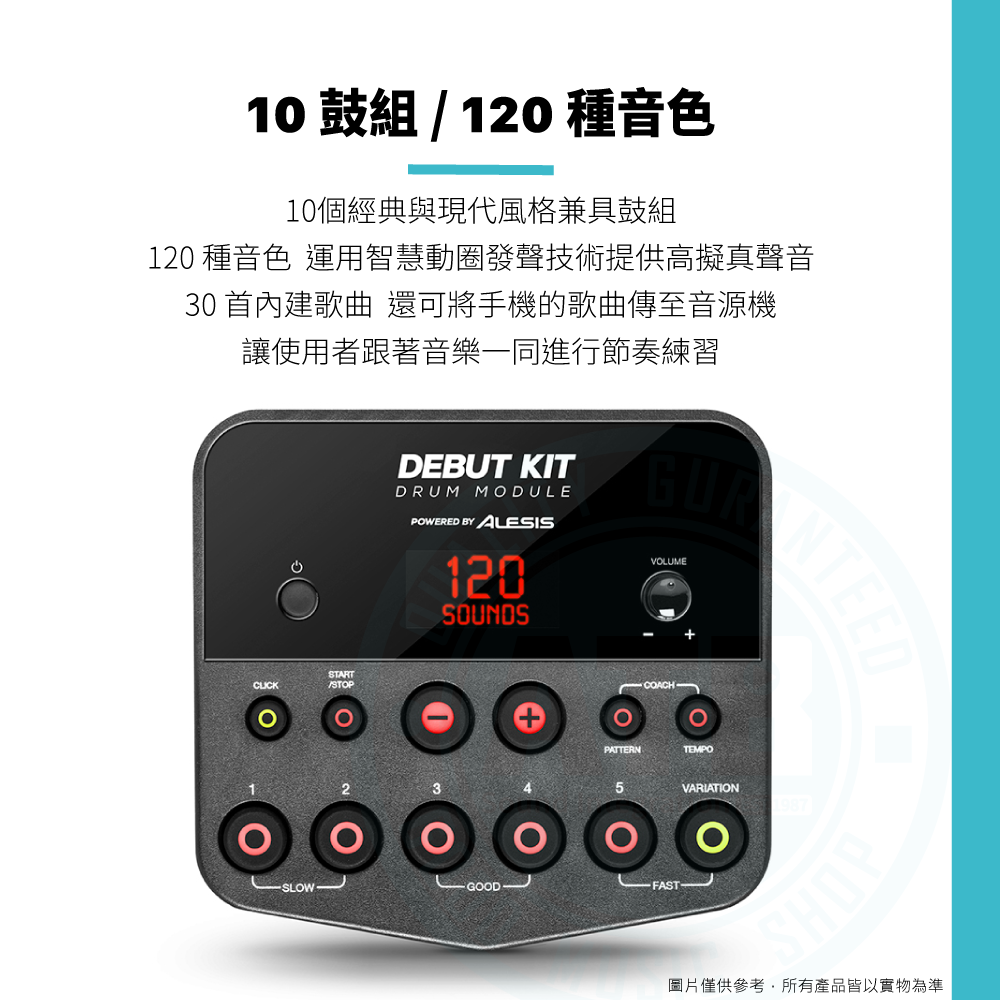 ◆ 10種鼓組、120種音色、30首內建曲目