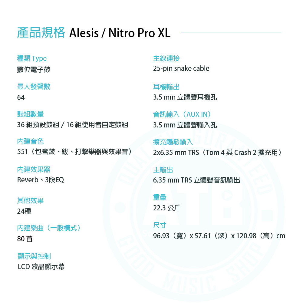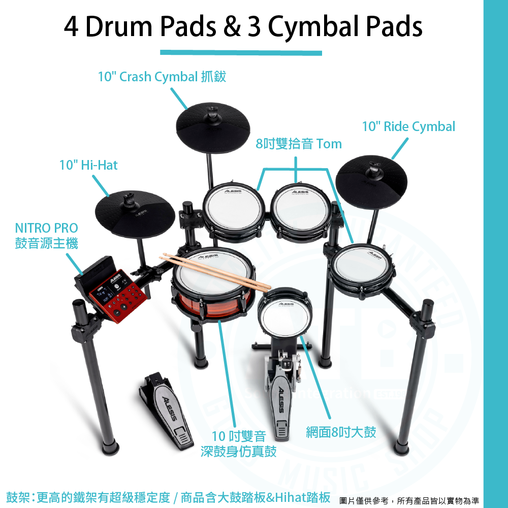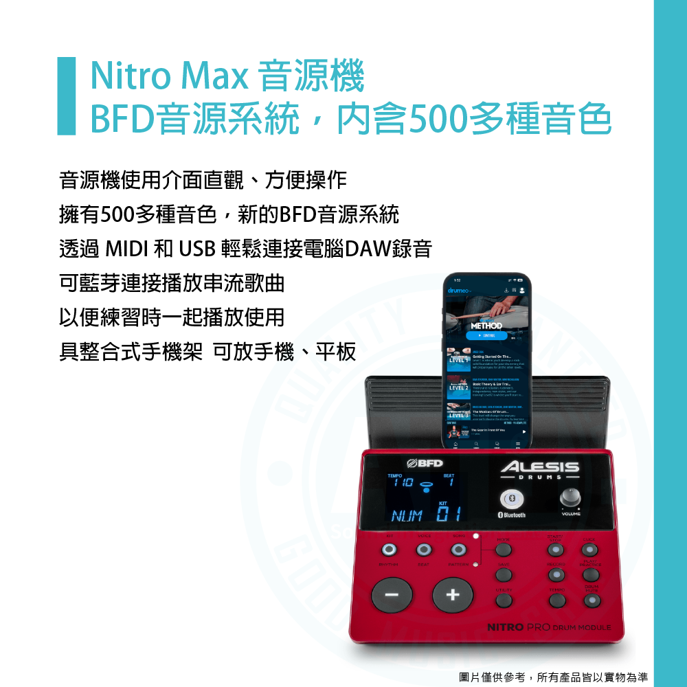 ◆ 搭載Nitro Max音源機、52 鼓組,500+ 鼓音色來組合鼓組