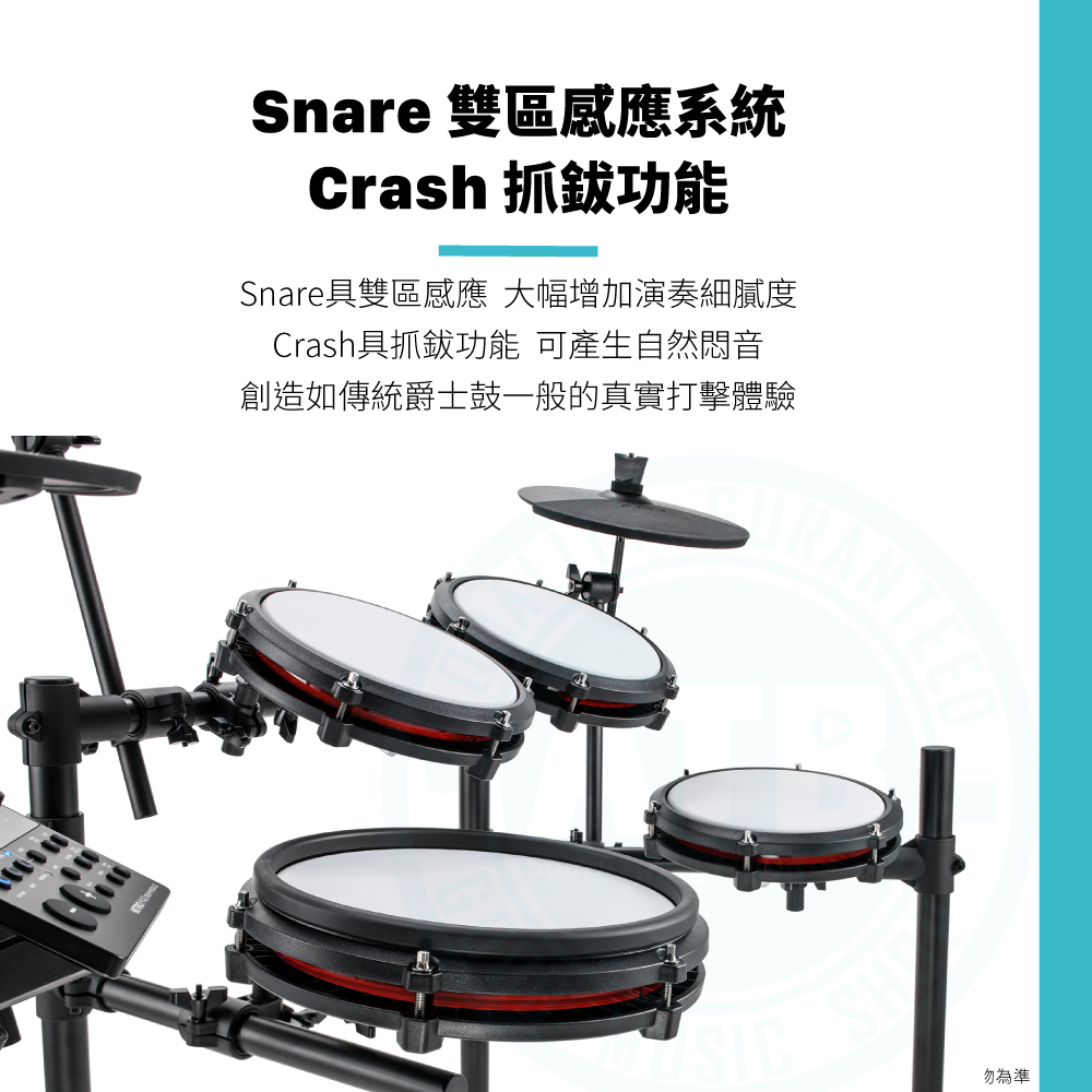 ◆ Snare具雙區感應系統、Crash具抓鈸功能