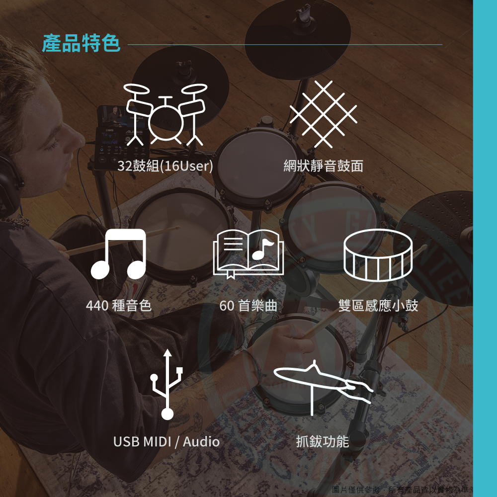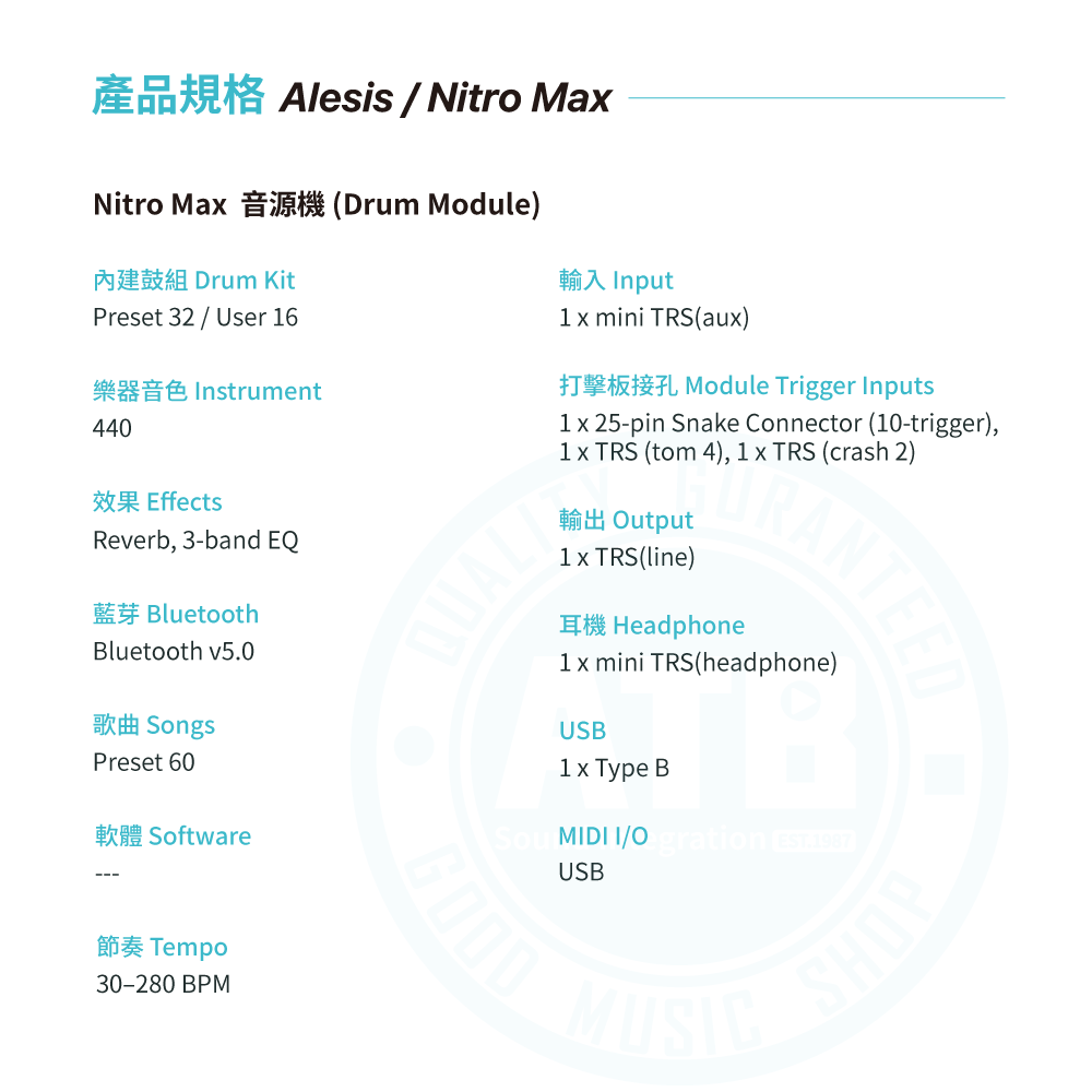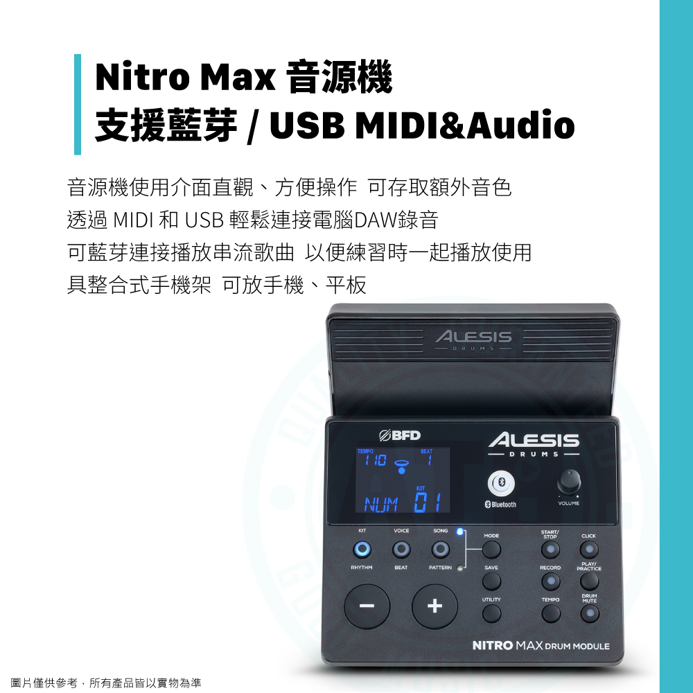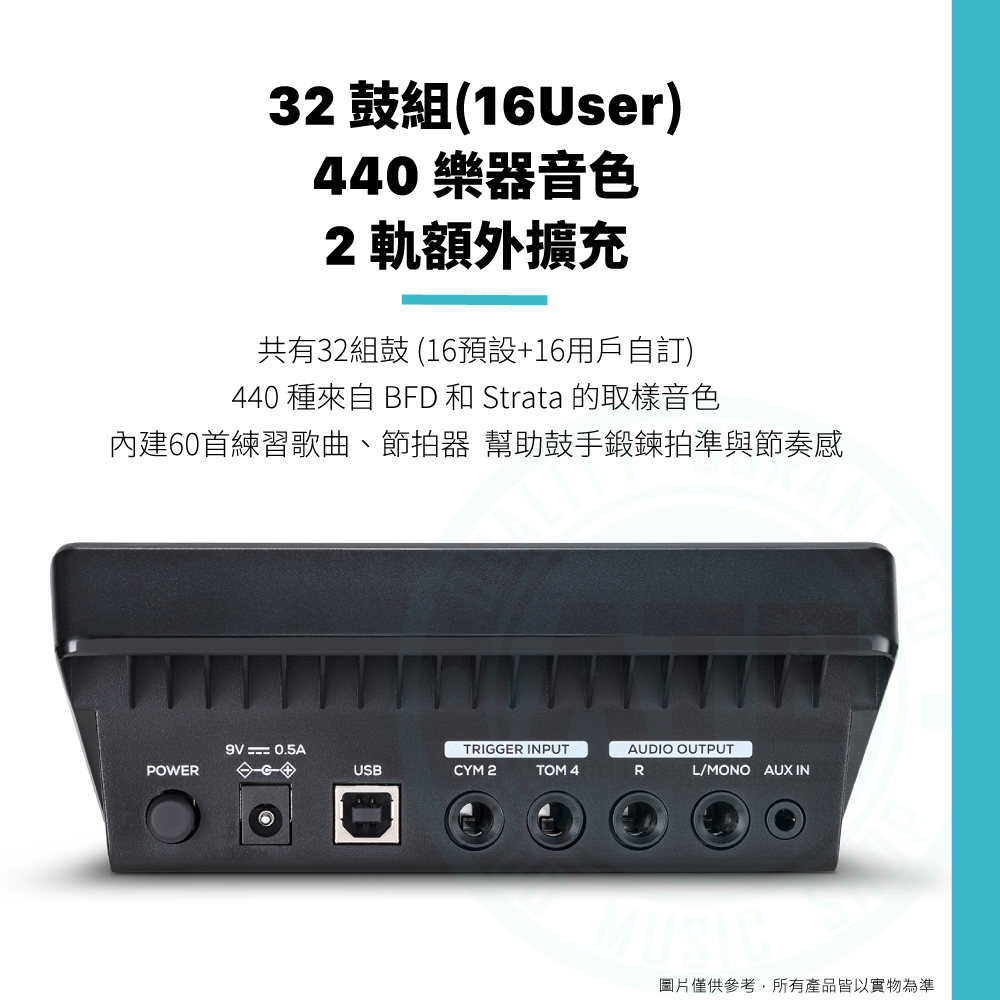 ◆ 搭載Nitro Max音源機、32鼓組(16User)、440樂器音色、2軌額外擴充