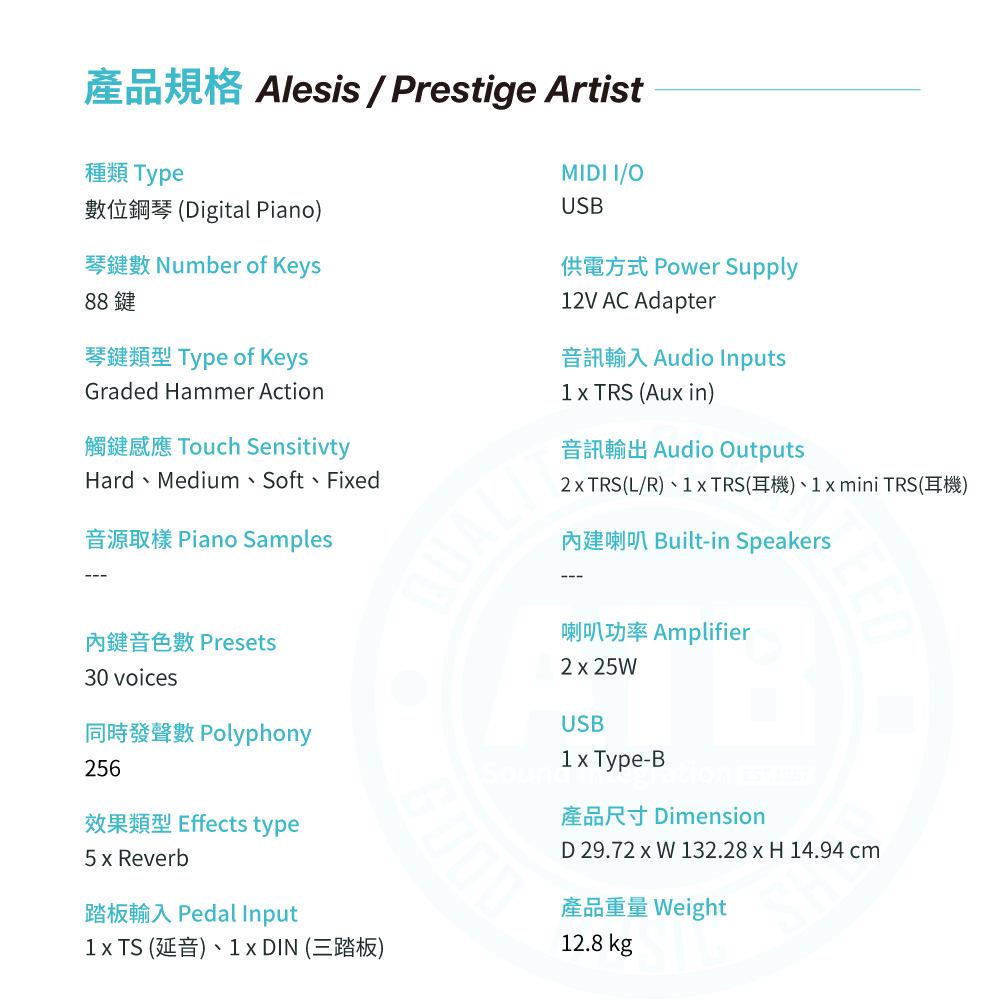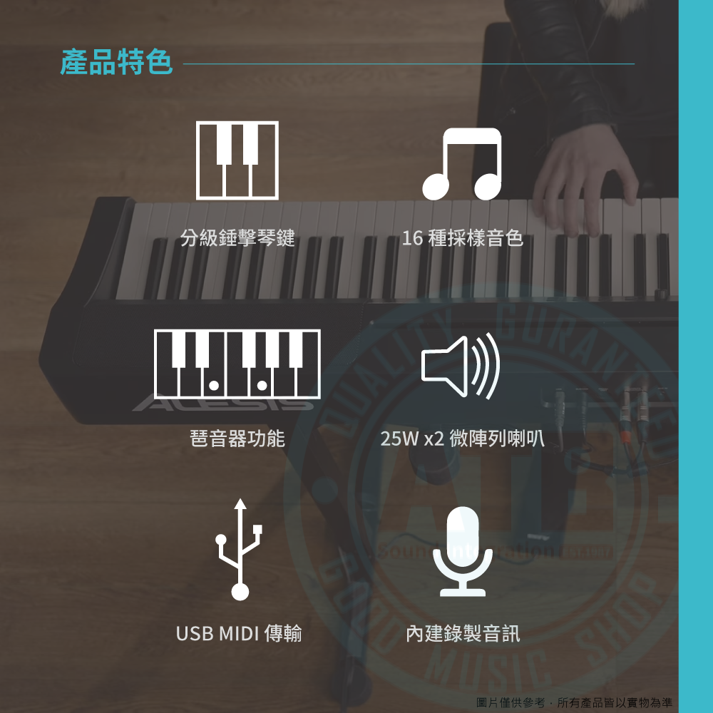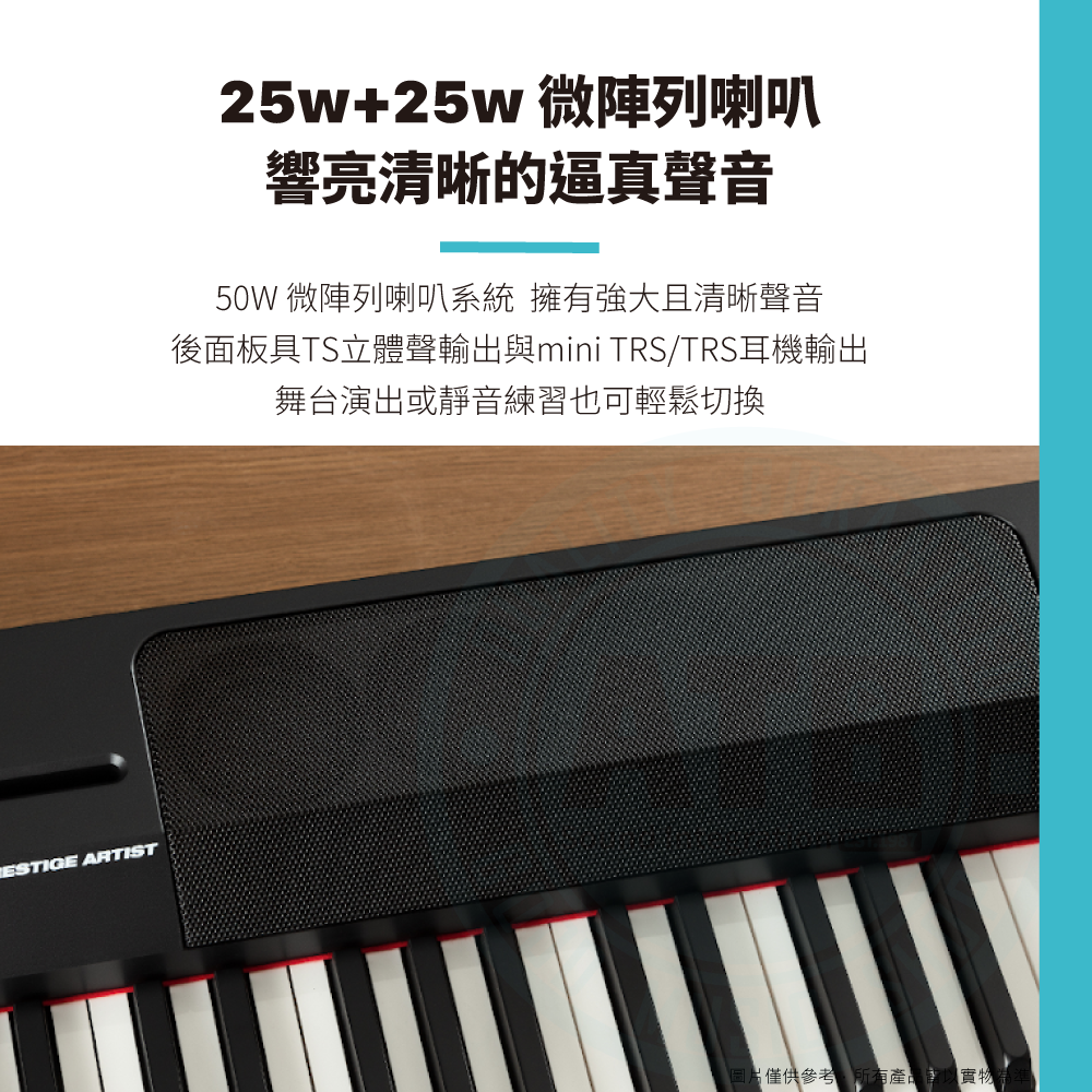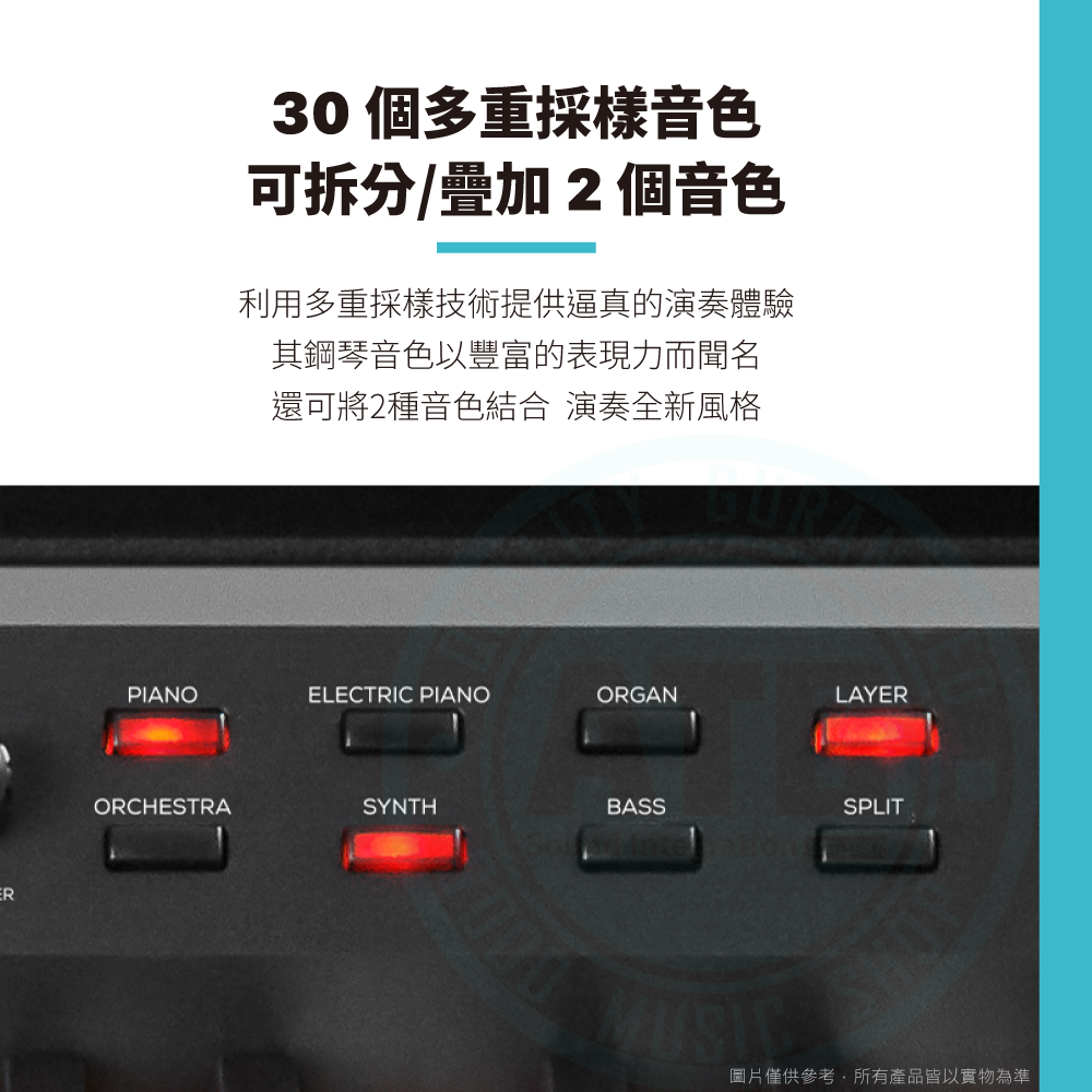 ◆ 30個多重採樣音色,可拆分/疊加2個音色,具5種混響效果