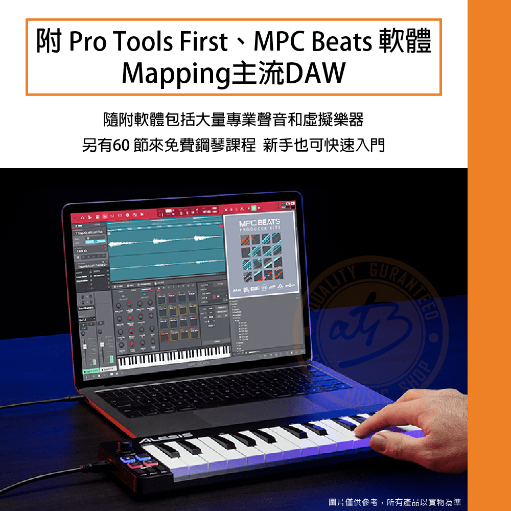 ◆ 32個迷你力度感應鍵盤,極輕巧僅0.45 kg