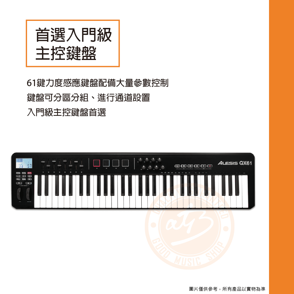 ◆ 61鍵力度感應鍵盤配備大量參數控制,鍵盤可分區分組、進行通道設置,入門級主控鍵盤首選