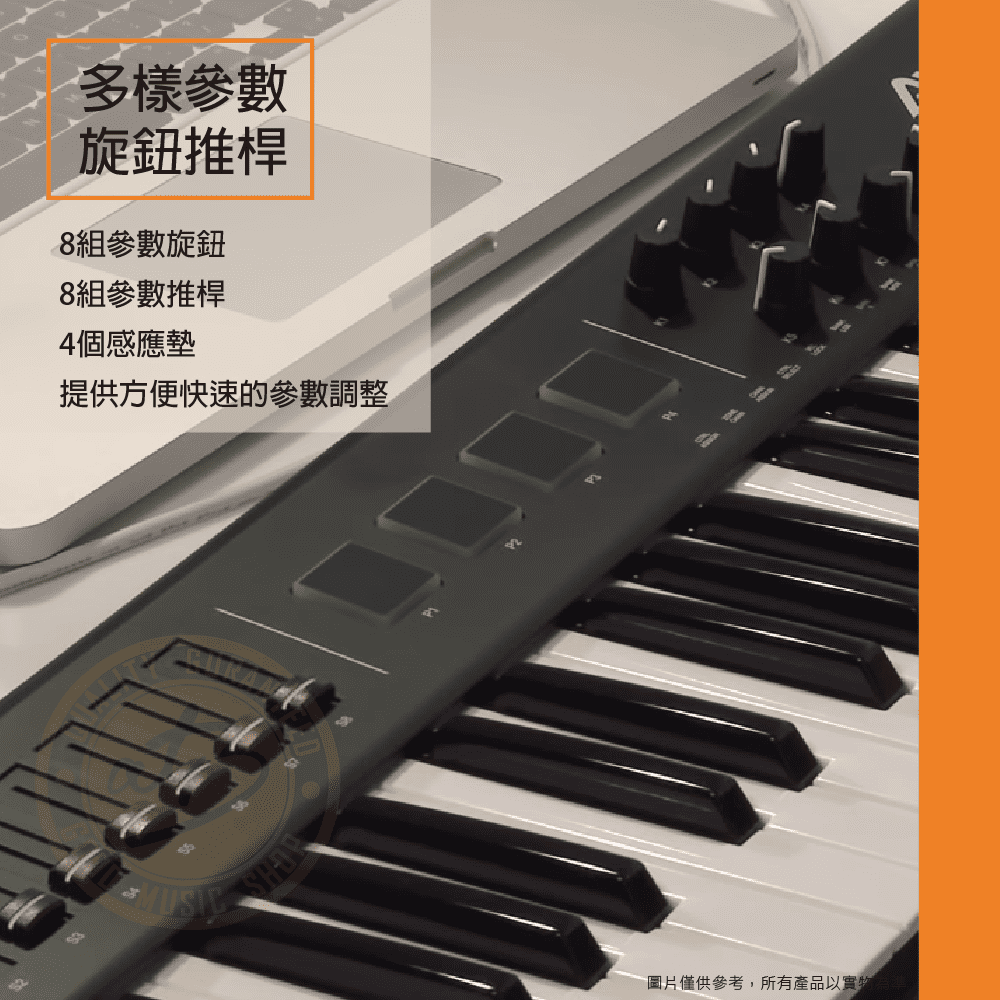 ◆ 8組參數旋鈕、8組參數推桿、4個感應墊