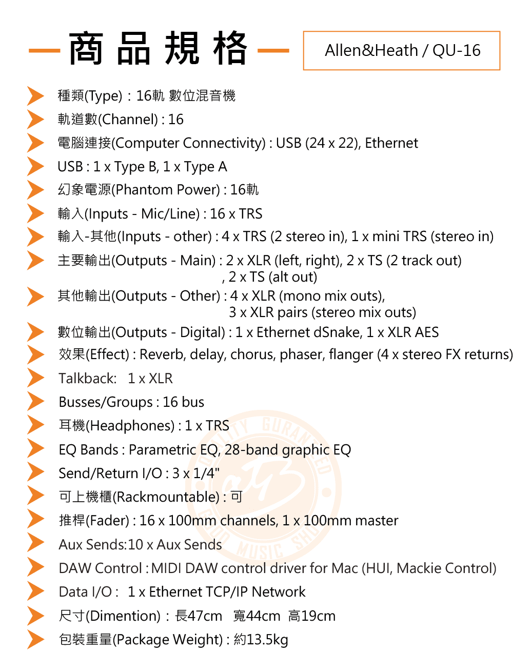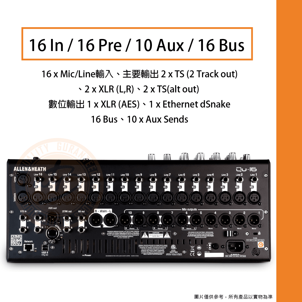 ◆ 16 In / 16 Pre / 10 Aux / 16 Bus