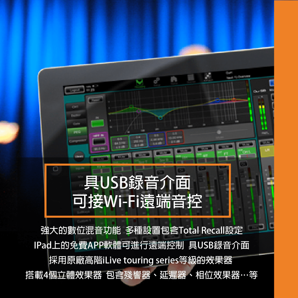 ◆ 具USB錄音介面,可接Wi-Fi遠端音控