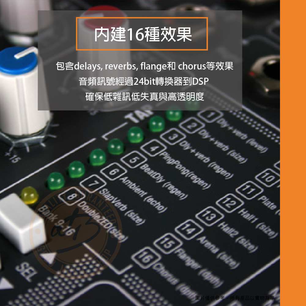 ◆ 內建16種效果選擇,包含delays, reverbs, flange和 chorus等效果