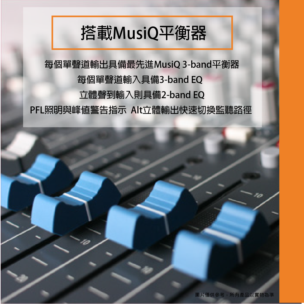 ◆ 每個單聲道輸出具備最先進MusiQ 3-band平衡器,Alt立體輸出快速切換監聽路徑
