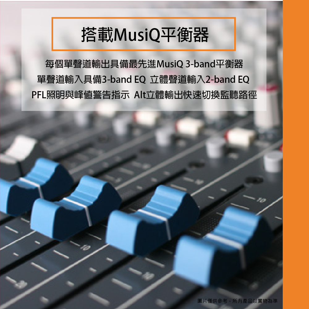 ◆ 每個單聲道輸出具備最先進MusiQ 3-band平衡器,Alt立體輸出快速切換監聽路徑