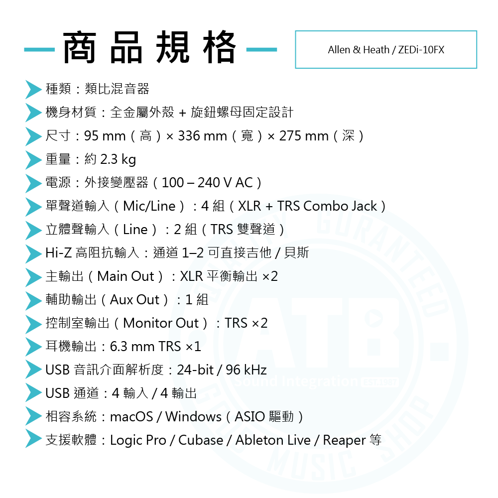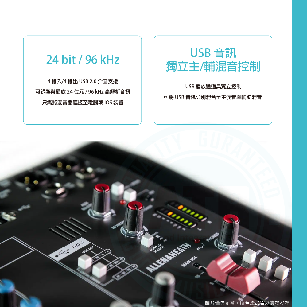 ◆ 內建 24-bit / 96 kHz USB 介面,支援多軌錄音與回放