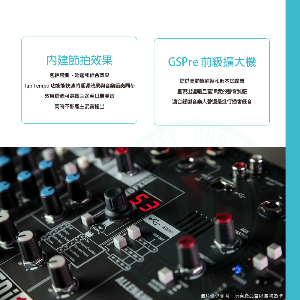 ◆ 提供 Reverb、Delay 等高品質效果器,現場音色更豐富