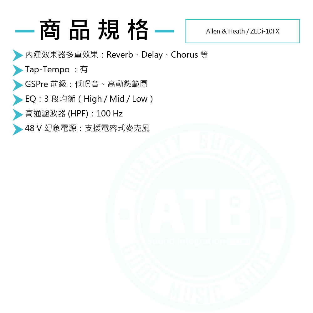 ◆ Hi-Z 高阻抗輸入,吉他與貝斯可直接接入