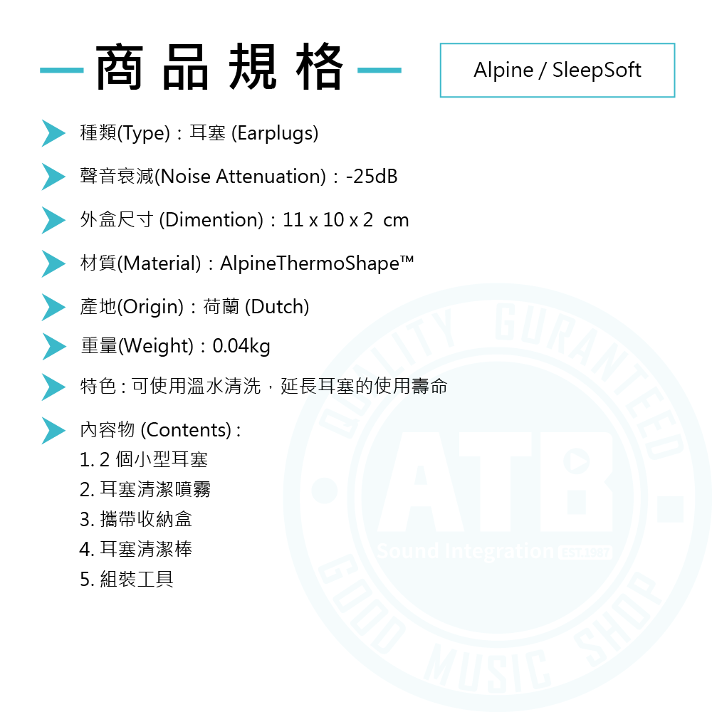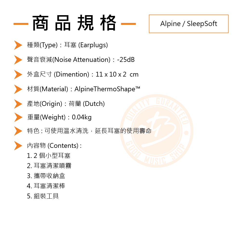 ◆ 內含攜帶盒、耳塞清潔噴霧(5ml)、清潔棒