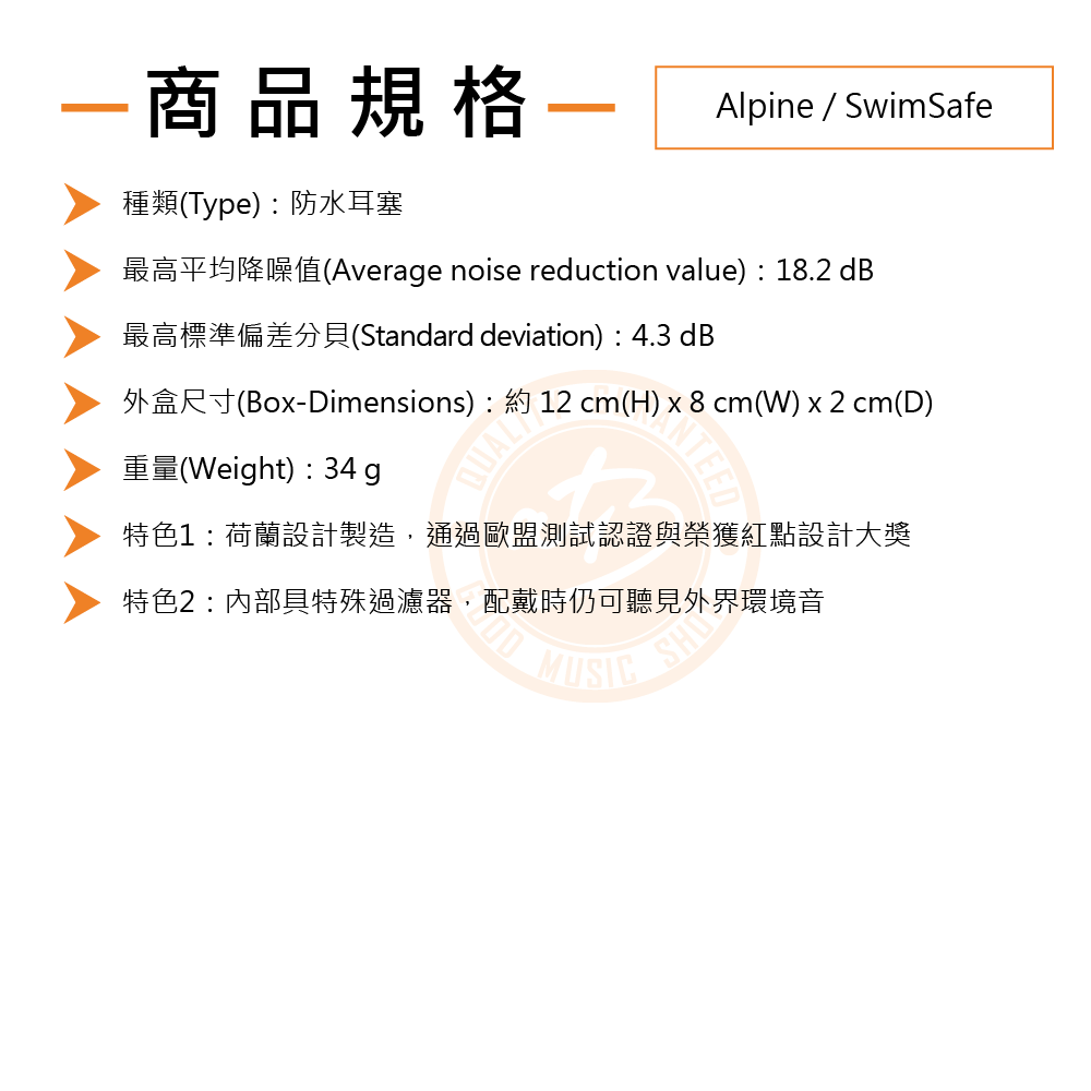 ◆ 荷蘭設計製造,游泳專用防水耳塞