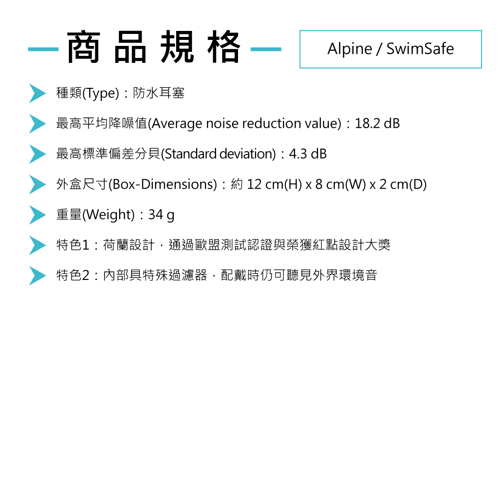 ◆ 荷蘭設計,游泳專用防水耳塞