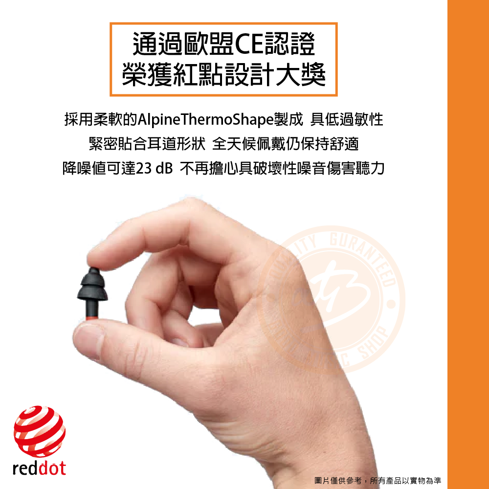 ◆ 耳塞採AlpineThermoShape製成,具低過敏性