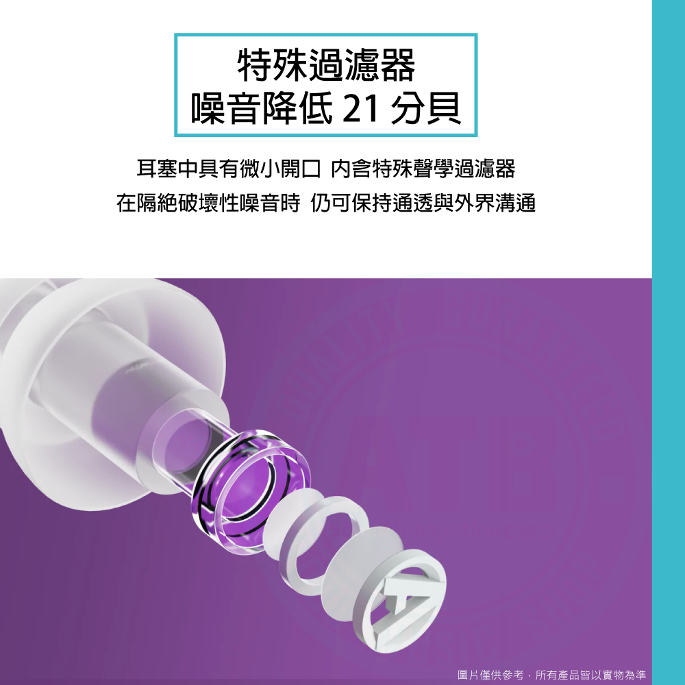◆ 具備特殊過濾器,可保持通透環境音,降噪值可達21dB