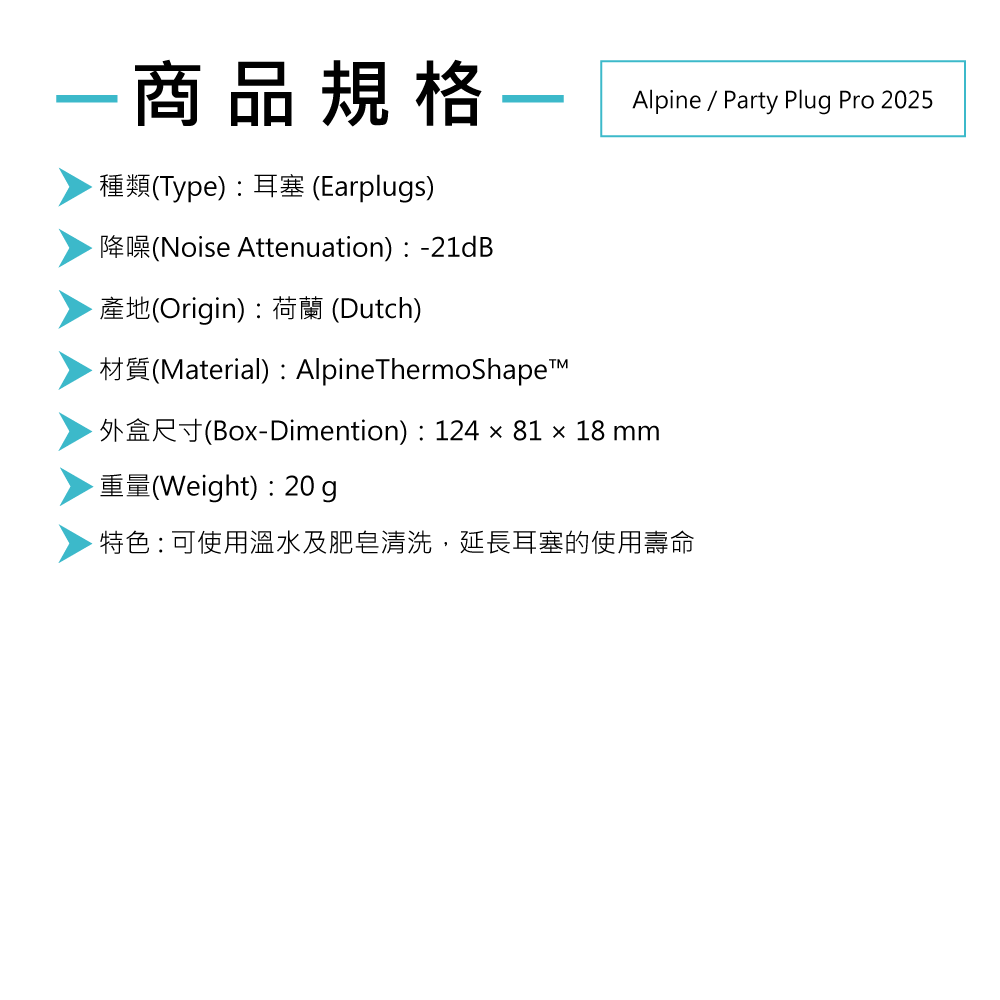 ◆ 耳塞採AlpineThermoShape製成,具低過敏性