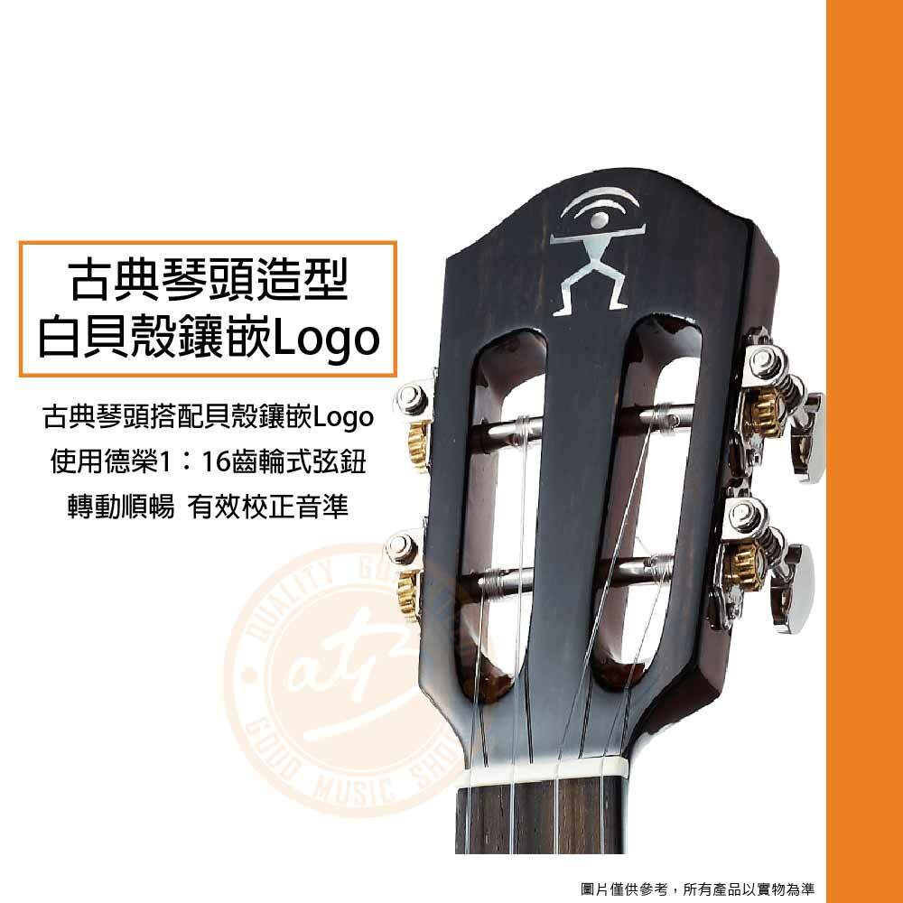 ◆ 古典琴頭造型,搭配白貝殼鑲嵌Logo