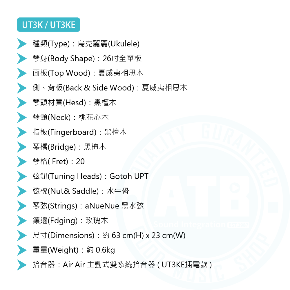 ◆ 全單夏威夷相思木面板、側背板,擁有清亮高頻與渾厚飽滿的中低頻