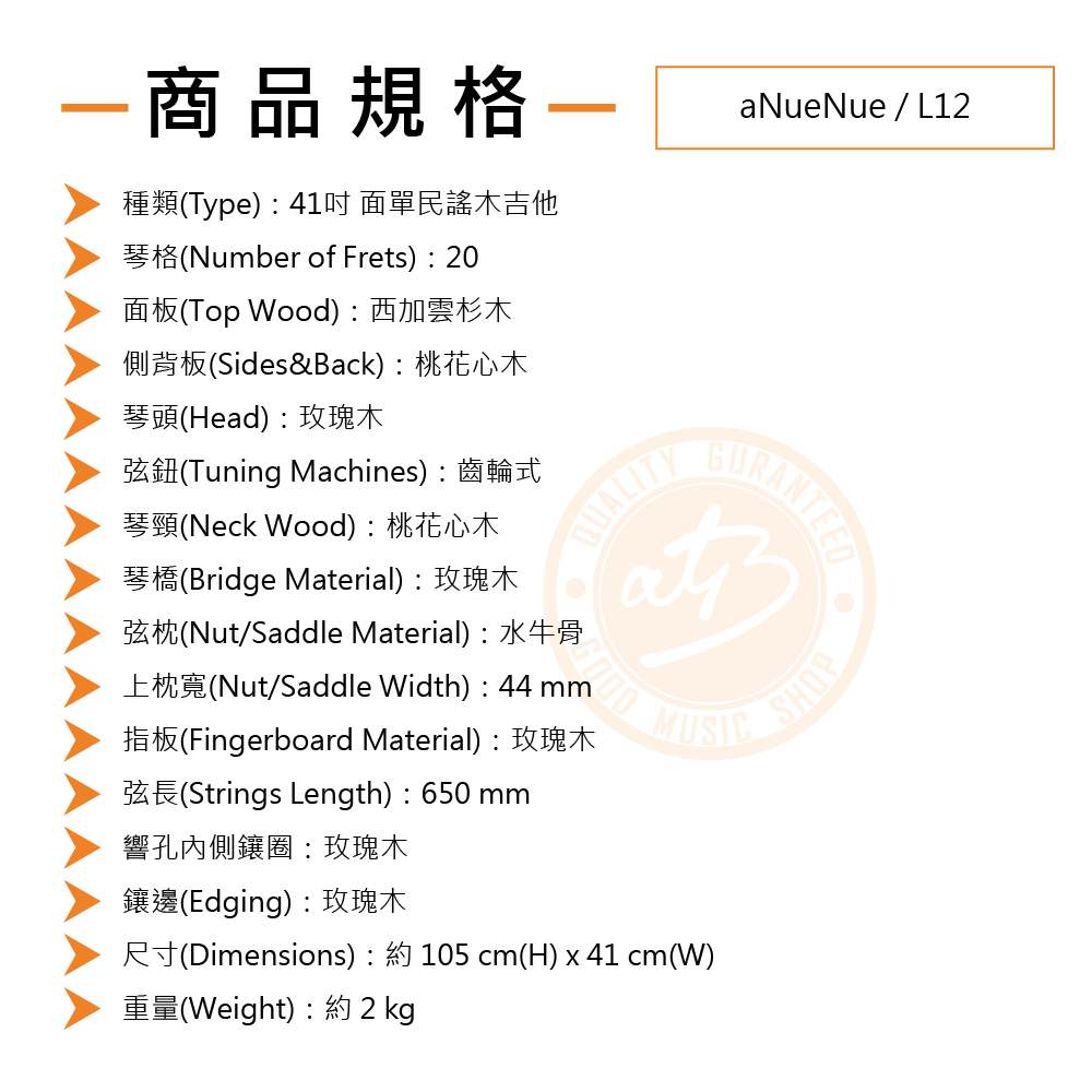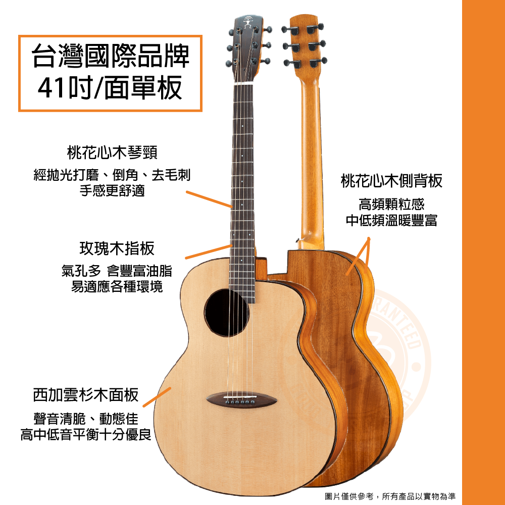 ◆ 台灣之光國際品牌,原創系列-以41吋吉他為核心,做工精緻、聲音一流