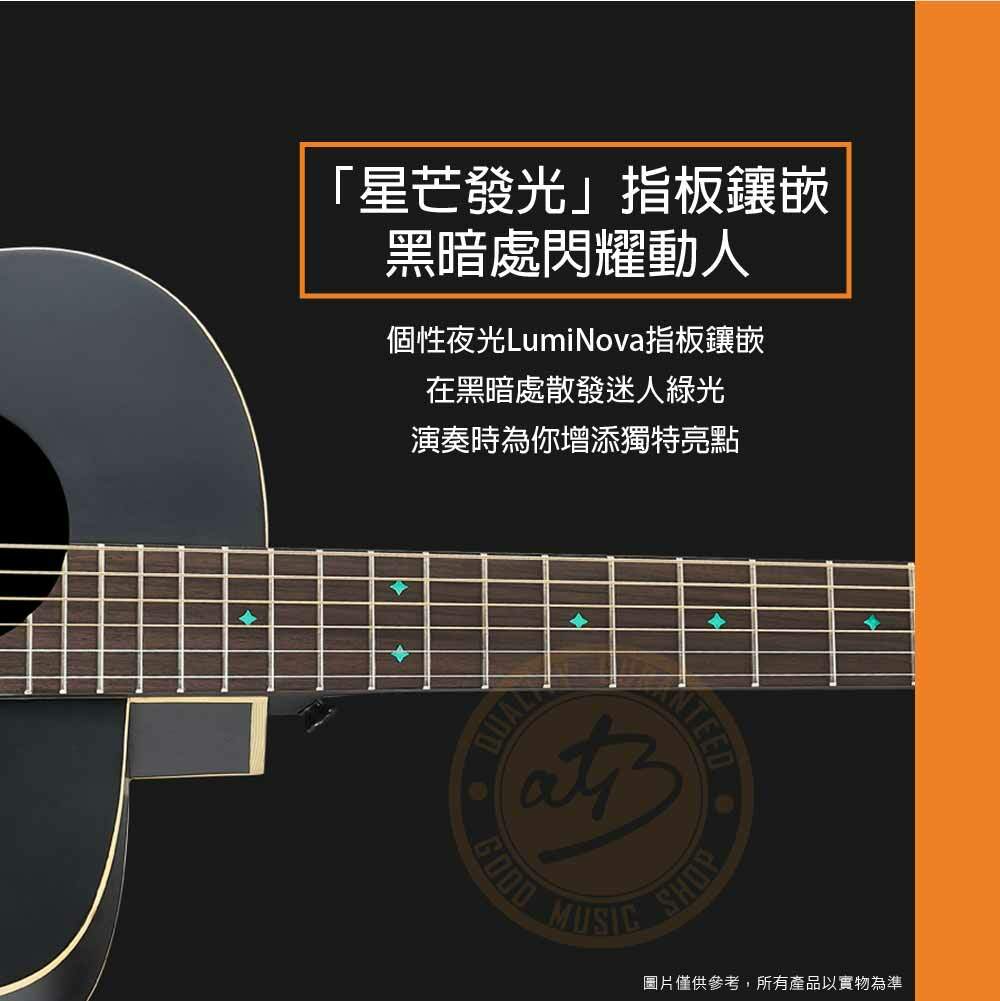 ◆ 個性夜光指板鑲嵌,在黑暗處散發迷人綠光,演奏時為你增添獨特亮點