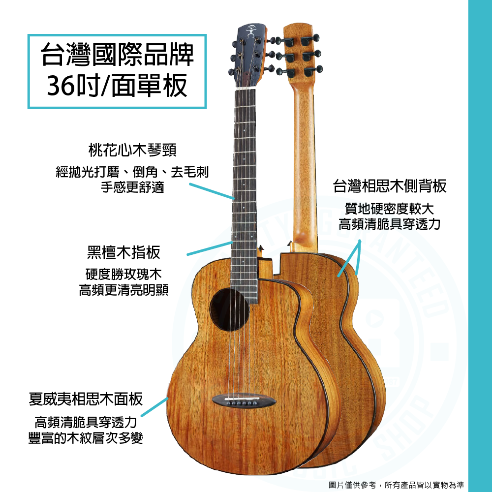 ◆ 夏威夷相思木面單板、台灣相思木側背板,高頻清脆具穿透力