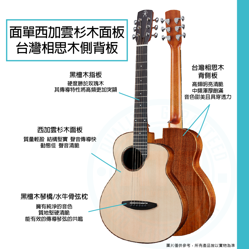 ◆ 西加雲杉木面板,台灣相思木側背板,動態佳,聲音清脆