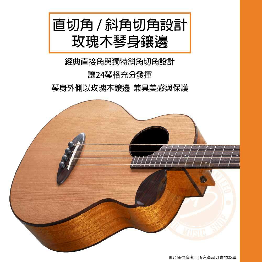 ◆ 36吋紅松木面板、桃花心木側背板,中頻具穿透性、音色溫暖厚實