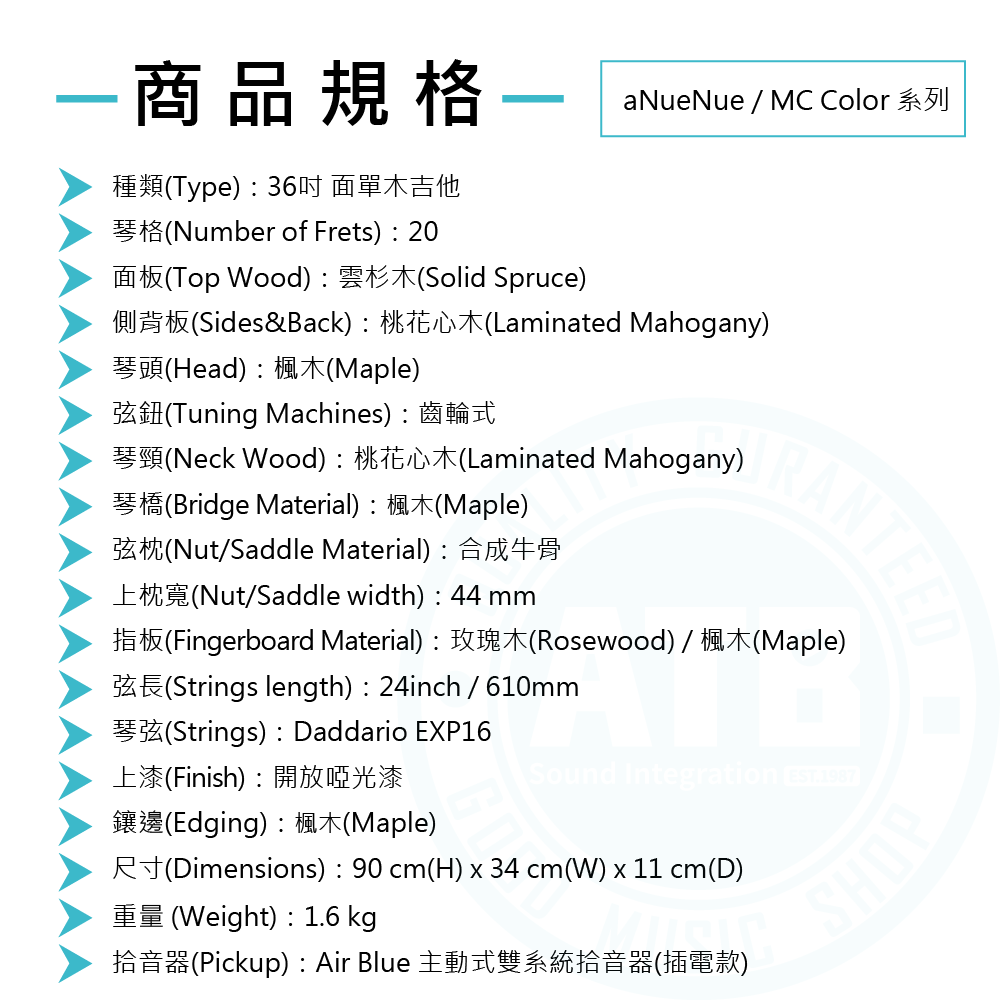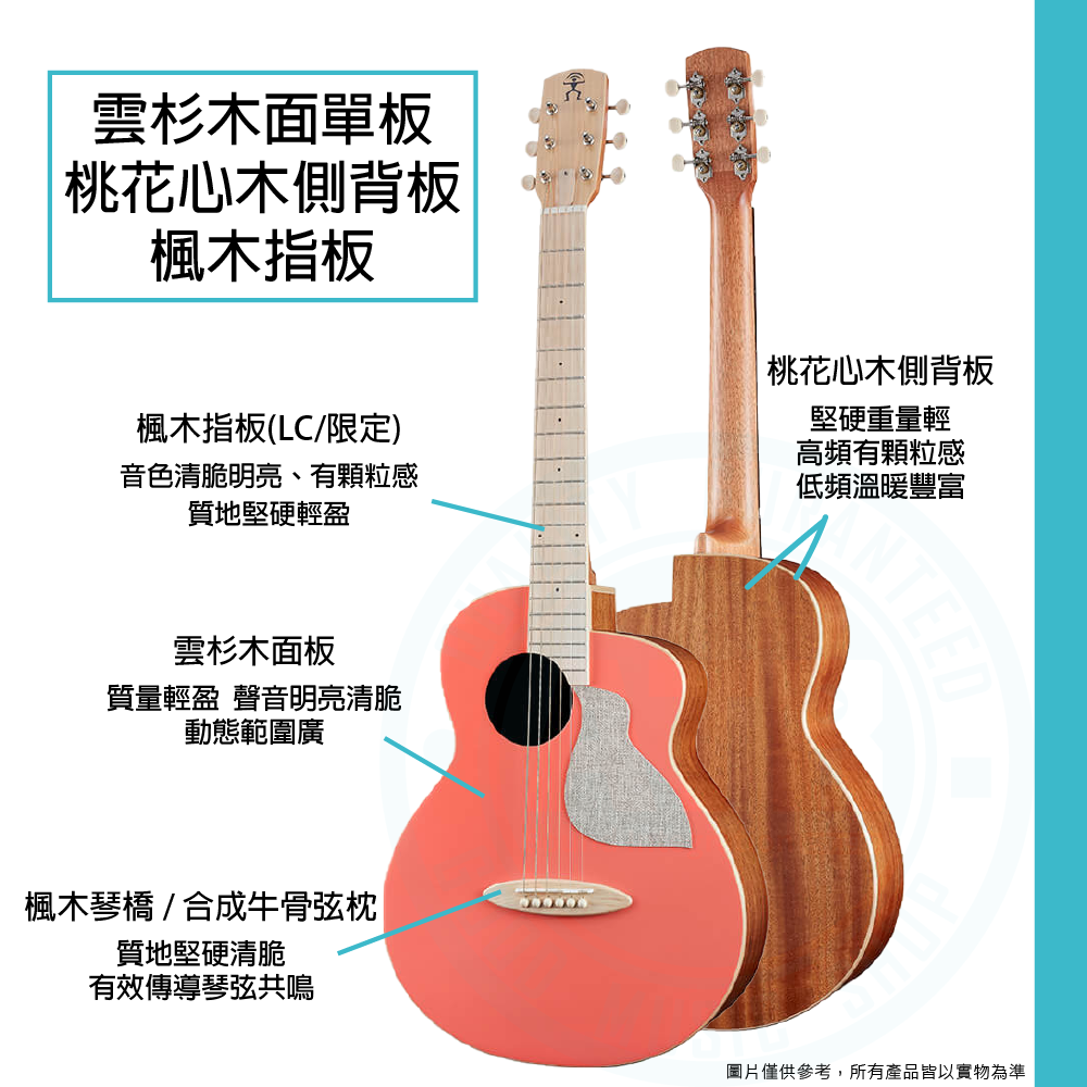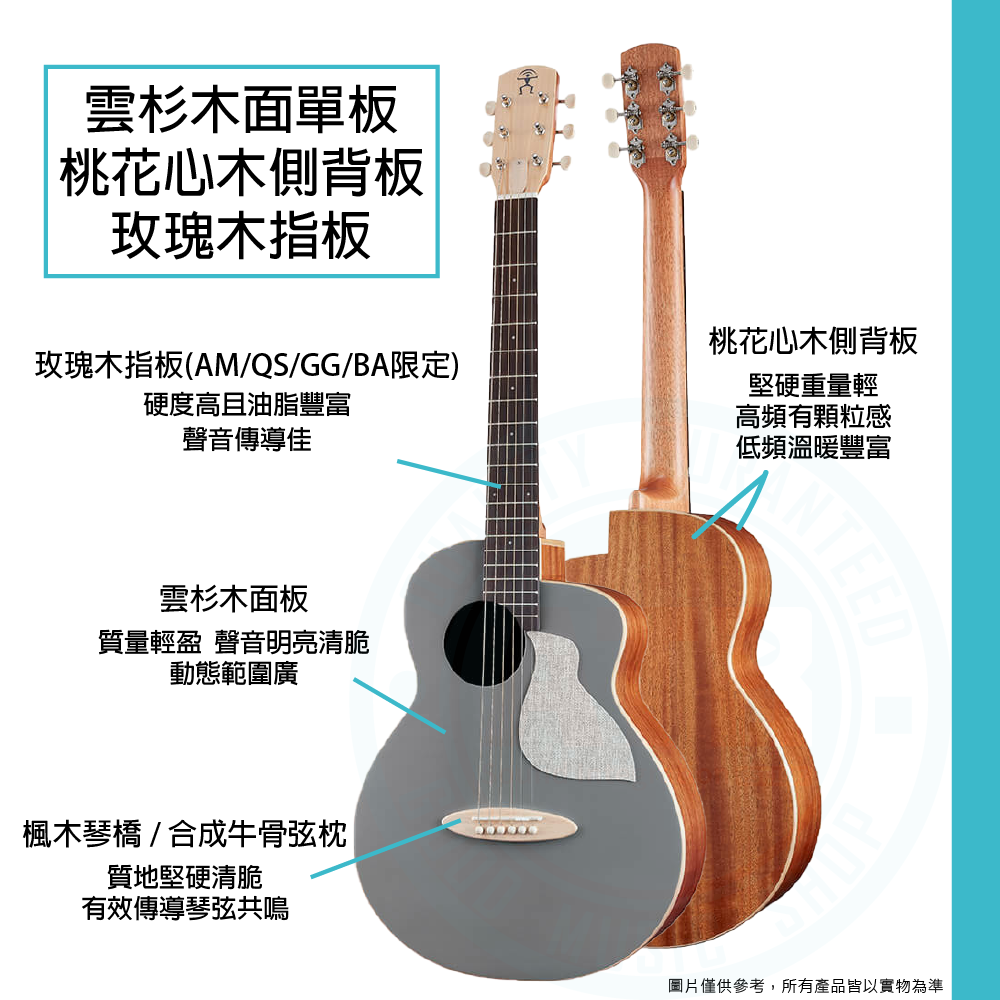 ◆ IG、AM、LC色系使用楓木指板,QS、GG、BA、BF、BB色系使用玫瑰木指板