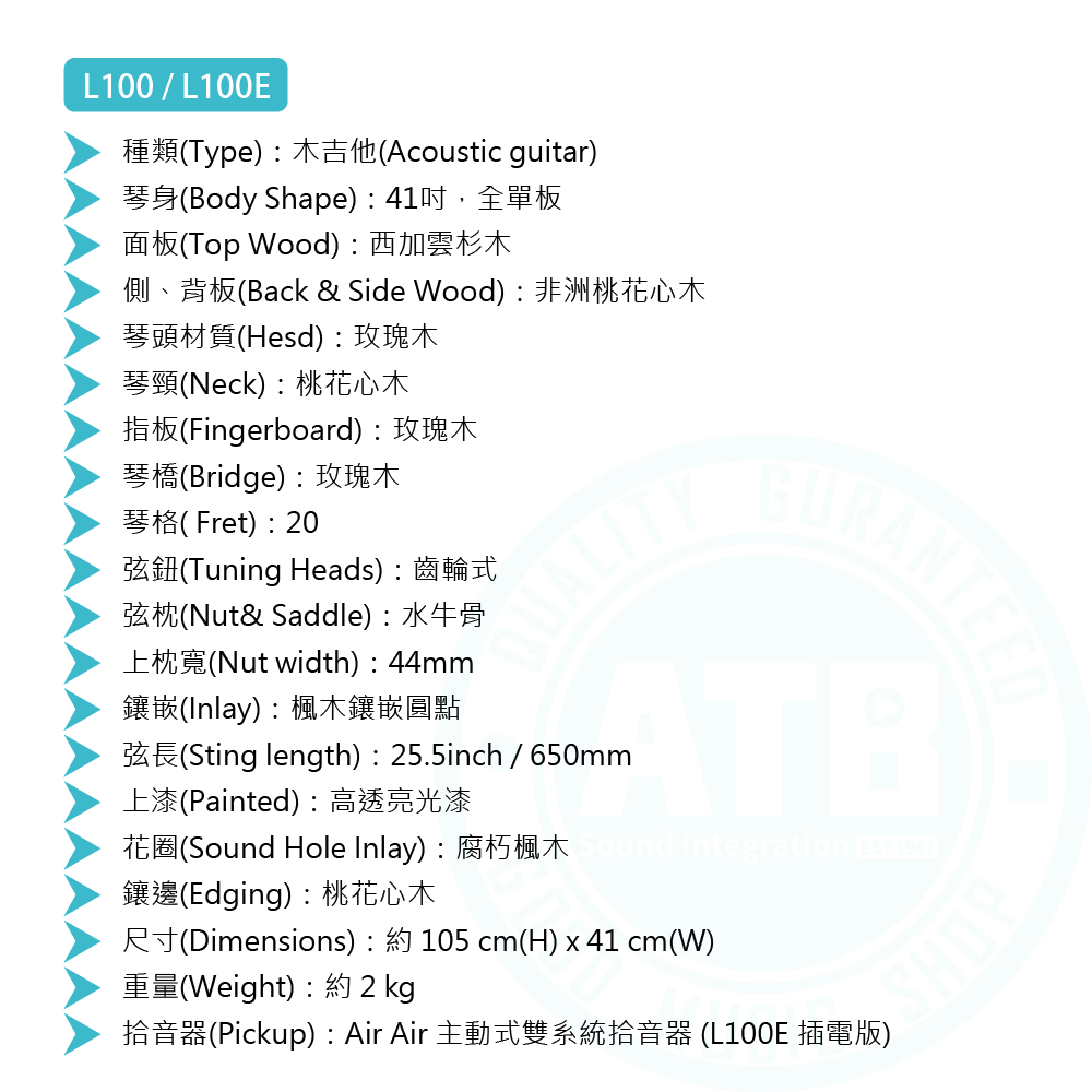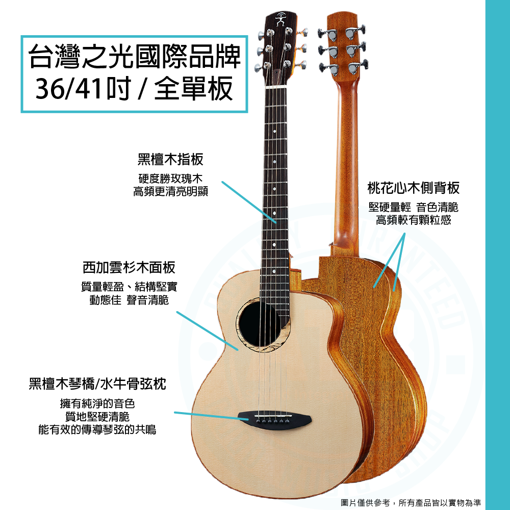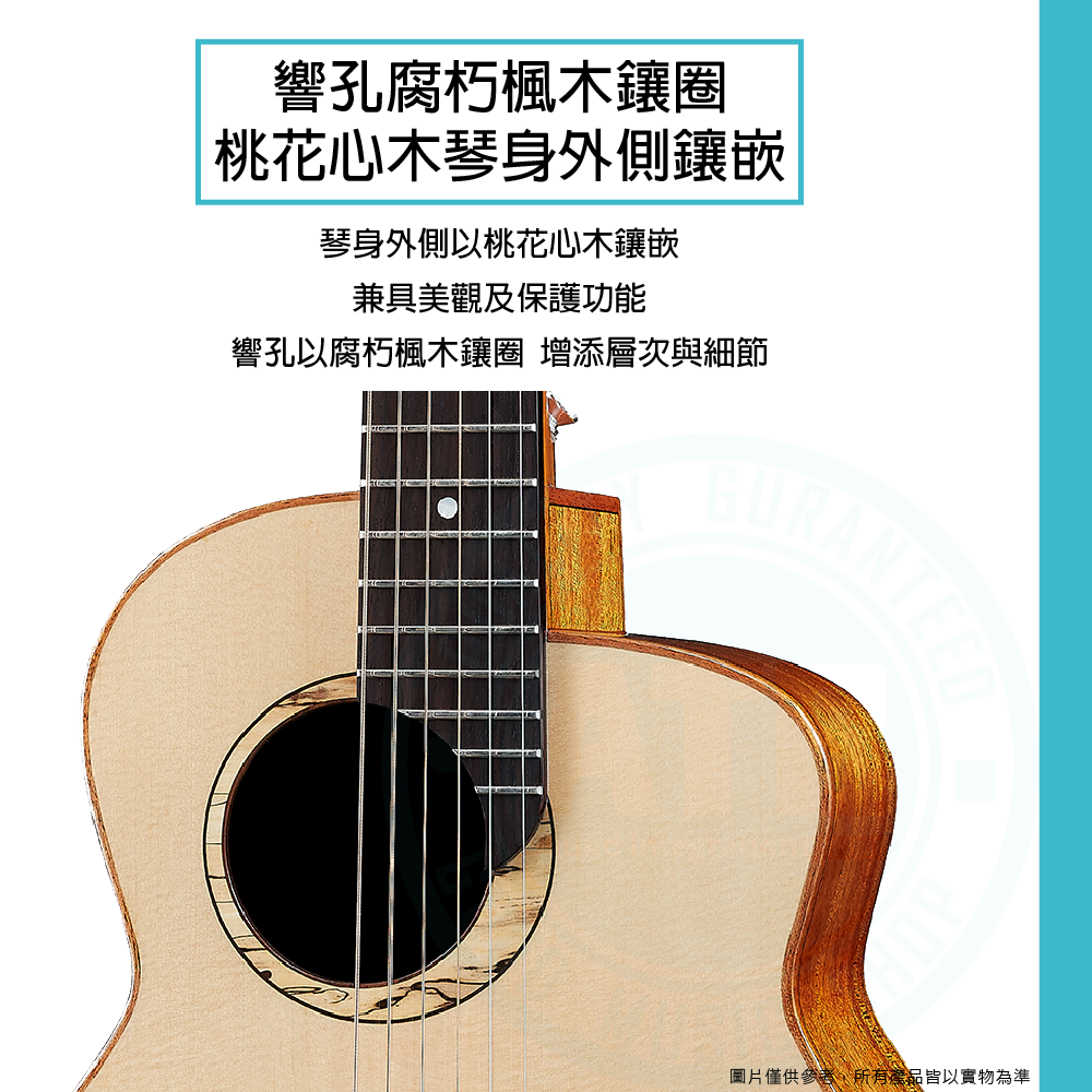 ◆西加雲杉木面板,搭配桃花心木側背板,音色清脆明亮